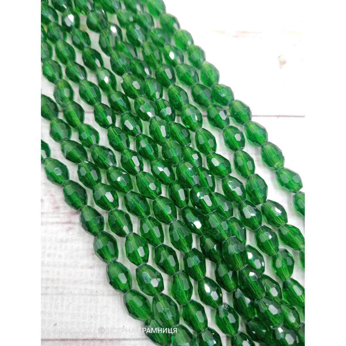 Намистини у формі овала, грановані, розмір 8*6 мм, скло. На нитці  або в упаковці 64-67 намистин.
