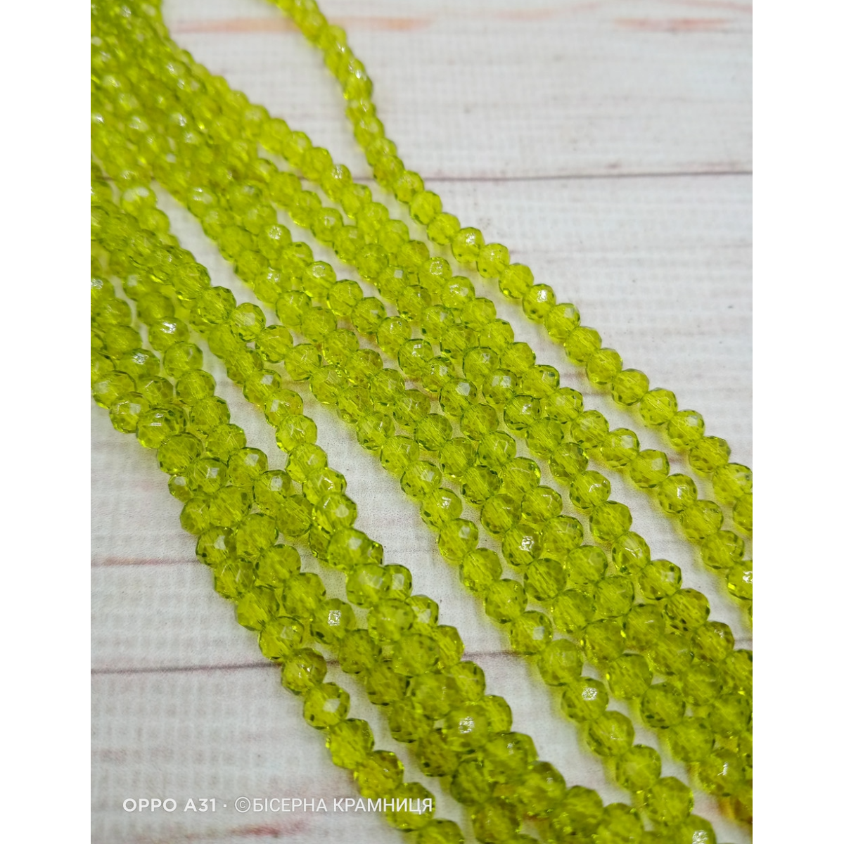 Рондель, розмір 4х3 мм. Оливкові прозорі