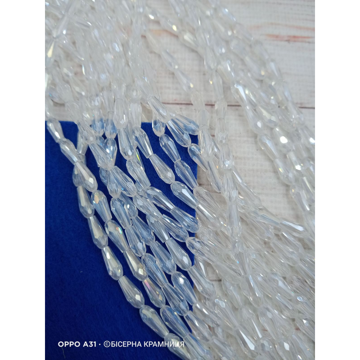Намистини-краплі, розмір 9*4 мм. Прозорі з райдужним покриттям