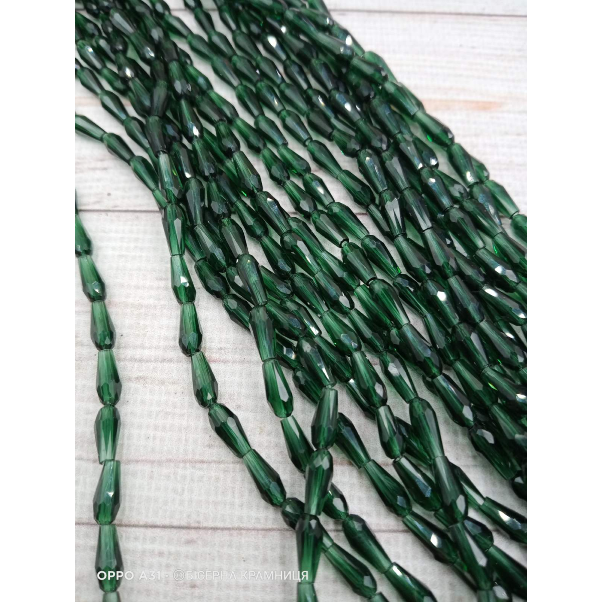 Намистини-краплі, розмір 9*4 мм. Темно-зелені прозорі