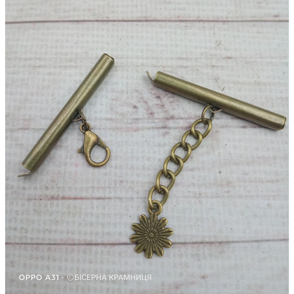 Комплект металевих застібок для браслета кольору бронзи для виробів з чеського бісеру. Підходять для браслета з чеського бісеру з розміру 10/0 на 20-21 бісерину.