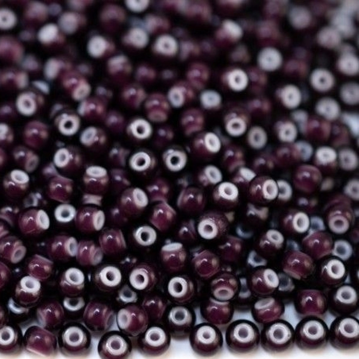23708 бісер Preciosa (Чехія) 5 грамів. Прозорий темно-фіолетовий з білою серединкою