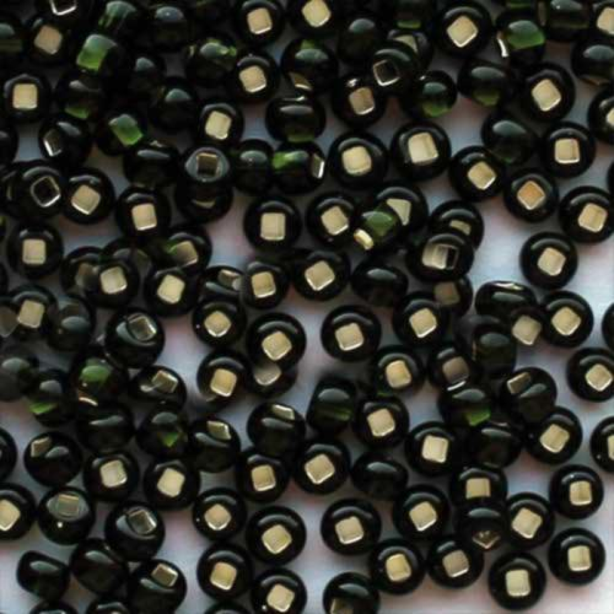 484-10/0-57290 Бісер Чехія (блискучий з квадратною серединкою, зелений болотний), упаковка 50 грамів