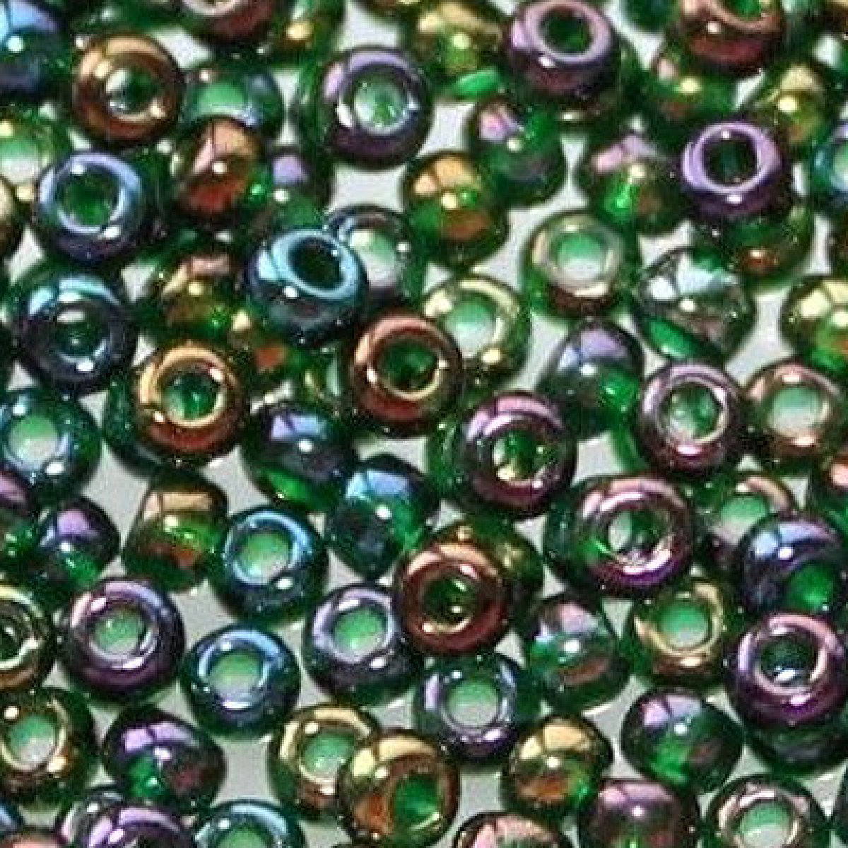 • 760-10/0-51150 Бісер Чехія (прозорий райдужний, золотистий темно-зелений), упаковка 50 грамів