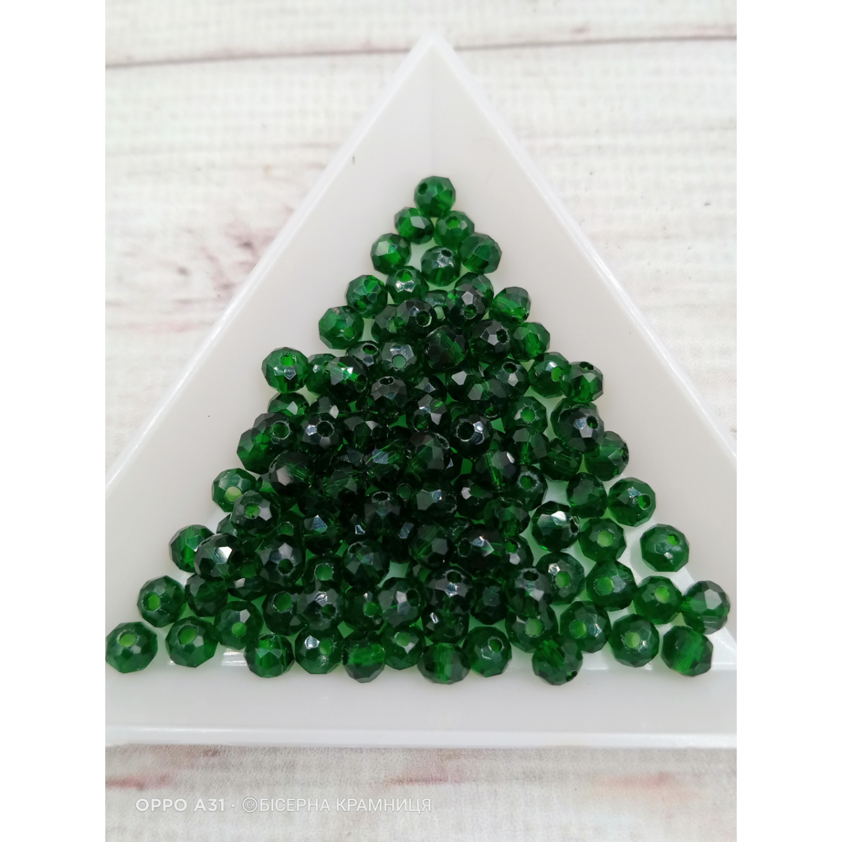 Ронделі, розмір 4*3 мм. Темно-зелені прозорі