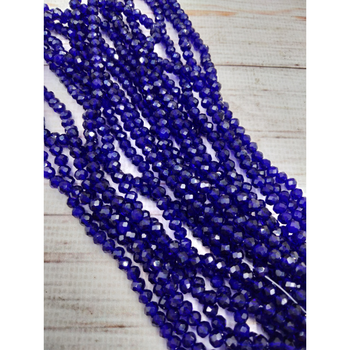 Ронделі, розмір 4*3 мм. Темно-сині прозорі