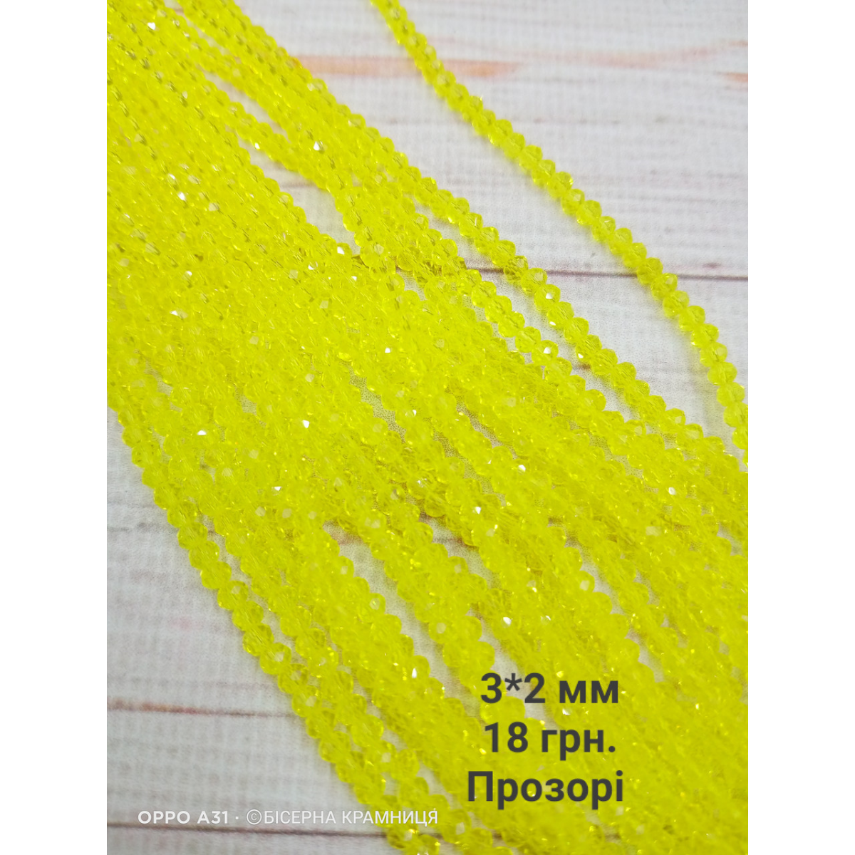 Ронделі, розмір 3*2 мм. Жовті прозорі з райдужним покриттям