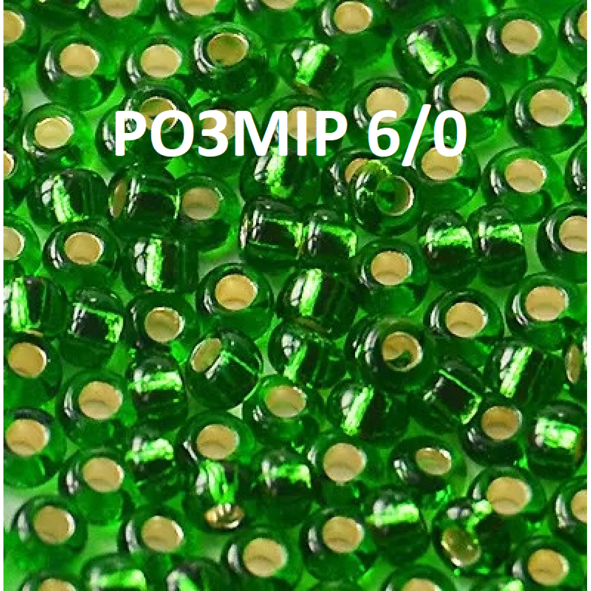 6029-6/0-57120 Бісер Чехія (блискучий зелений), упаковка 50 грамів. РОЗМІР 6/0