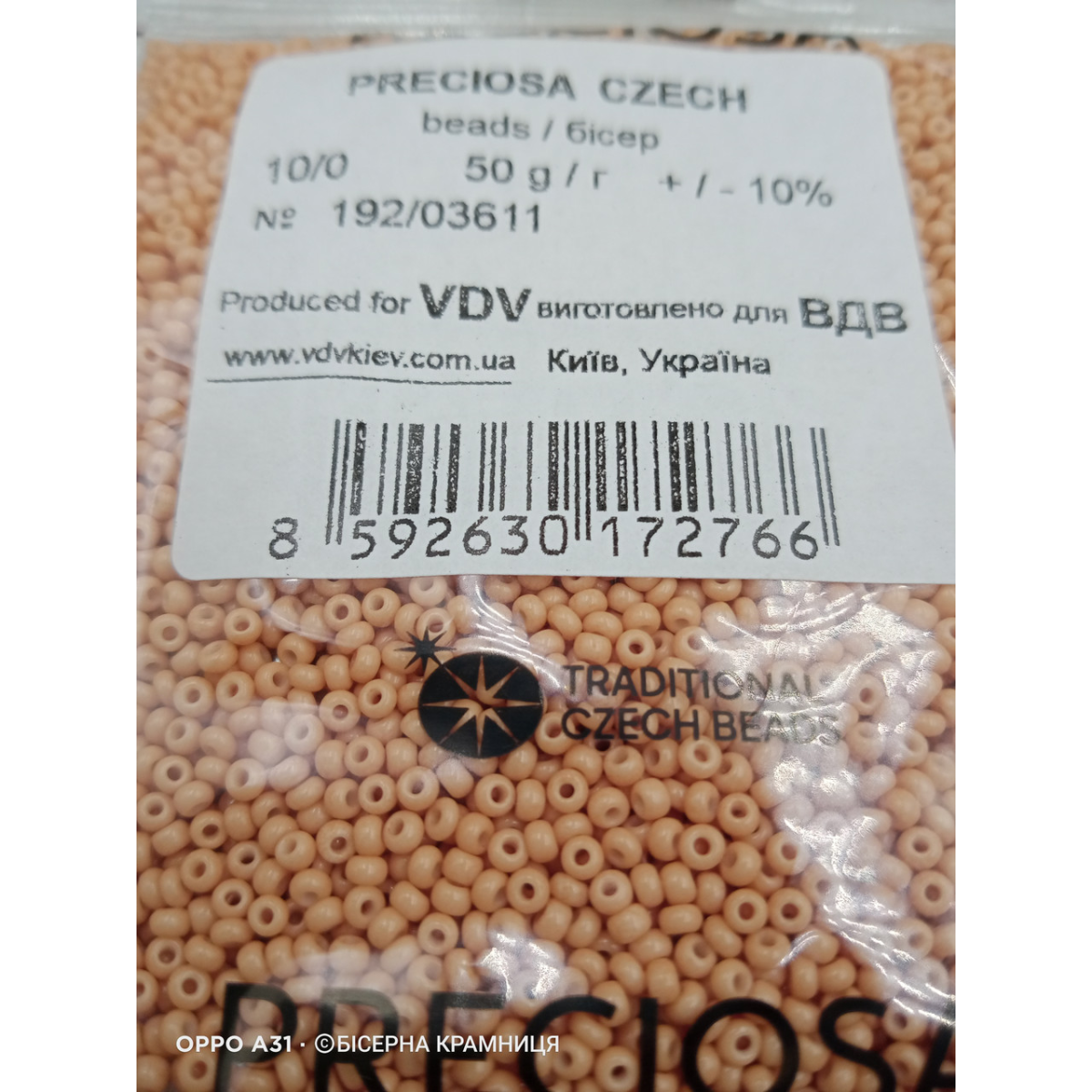 Чеський бісер Preciosa першого ґатунку розміру 10/0 в оригінальному фірмовому пакуванні або в зіп-пакеті по 50 грамів (±2 грами).