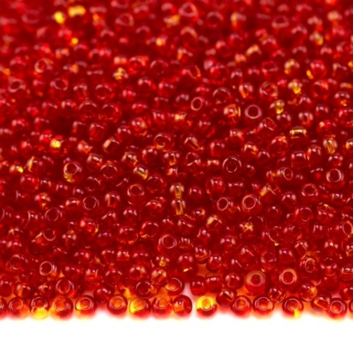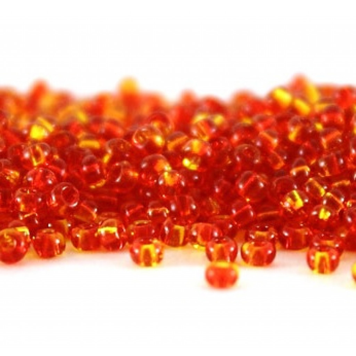 81797 бісер №10 Preciosa (Чехія) 5 грамів. Прозорий двокольоровий жовто-червоний