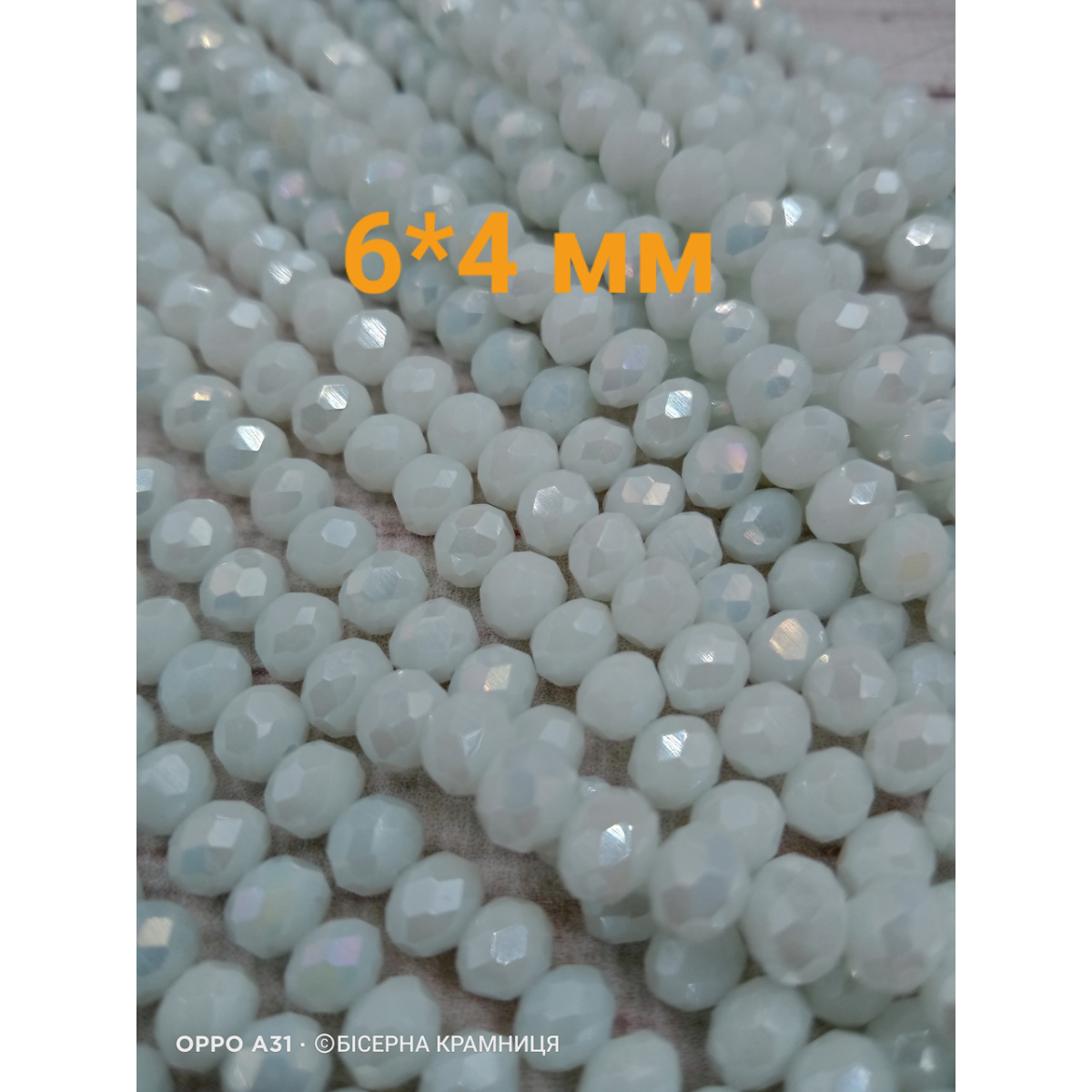 Ронделі, розмір 6*4 мм. Білі непрозорі з перламутровим покриттям