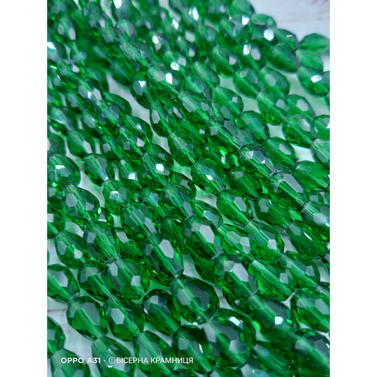 Намистини-краплі, 8*6 мм. Зелені прозорі