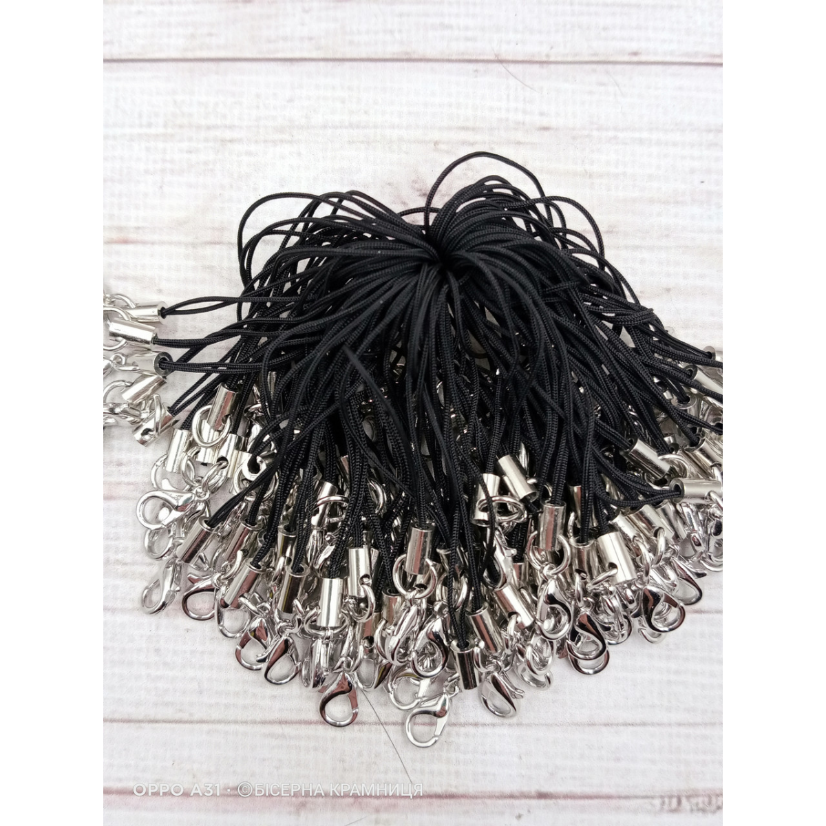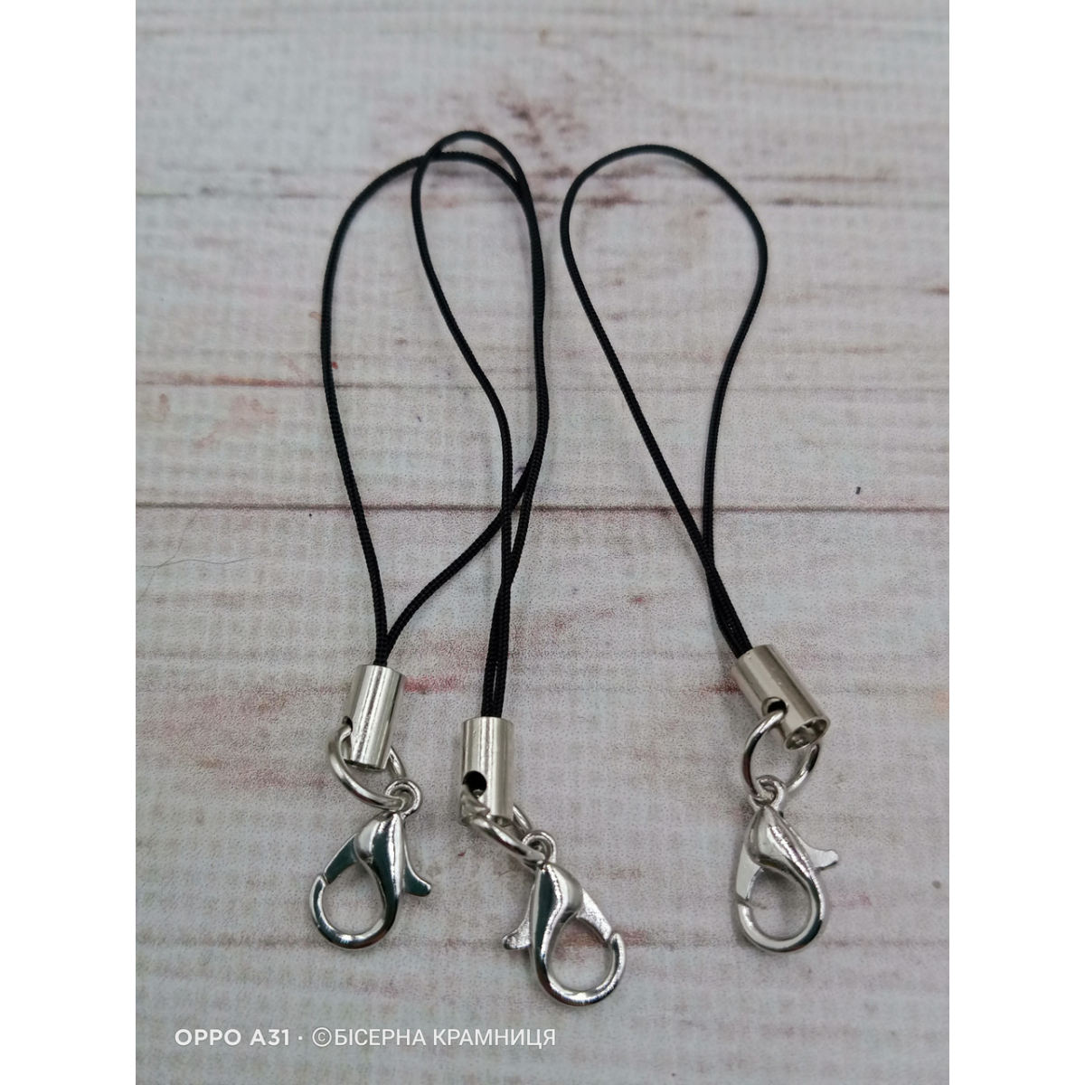 Чорний шнурок із карабіном для телефона, брелока