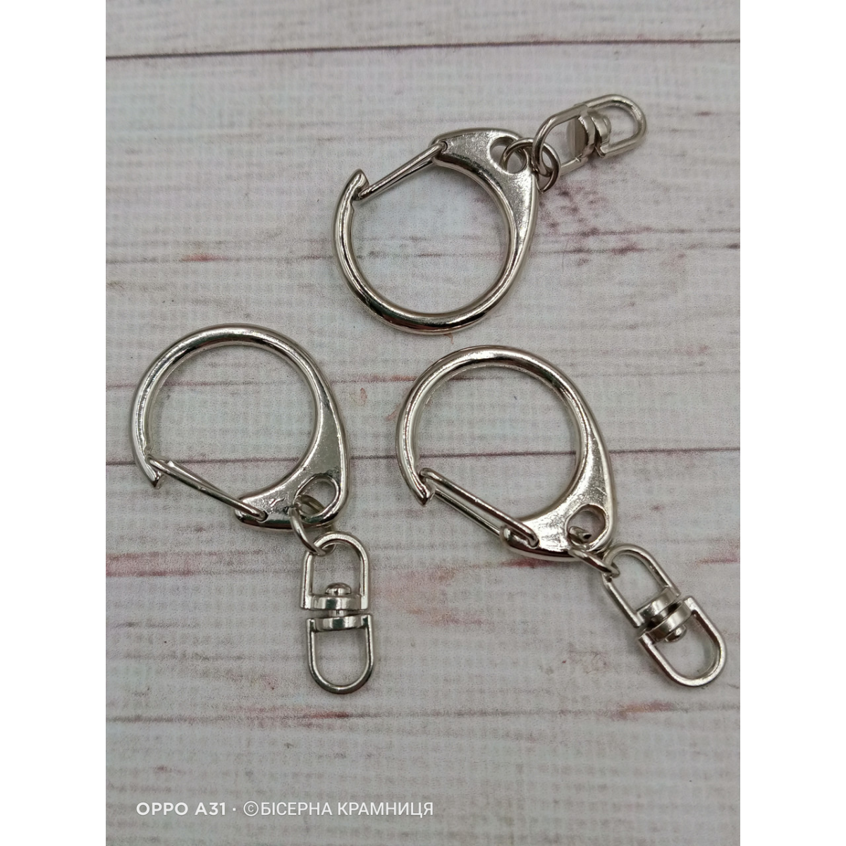 Основа для брелока Карабін з ланцюжком, колір срібла. Довжина карабіна 30 мм