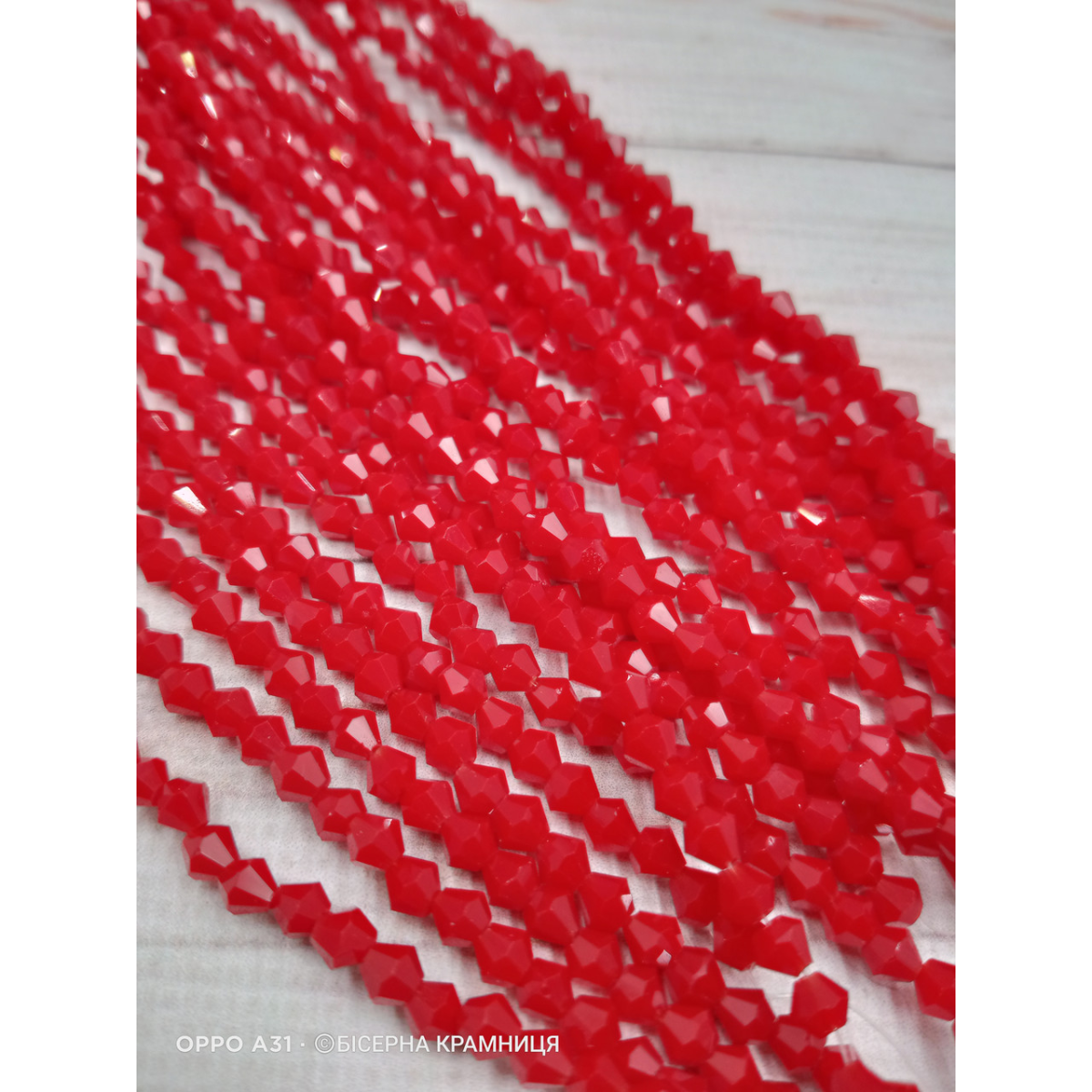 Біконус, розмір 4*4 мм. Яскравий червоний непрозорий