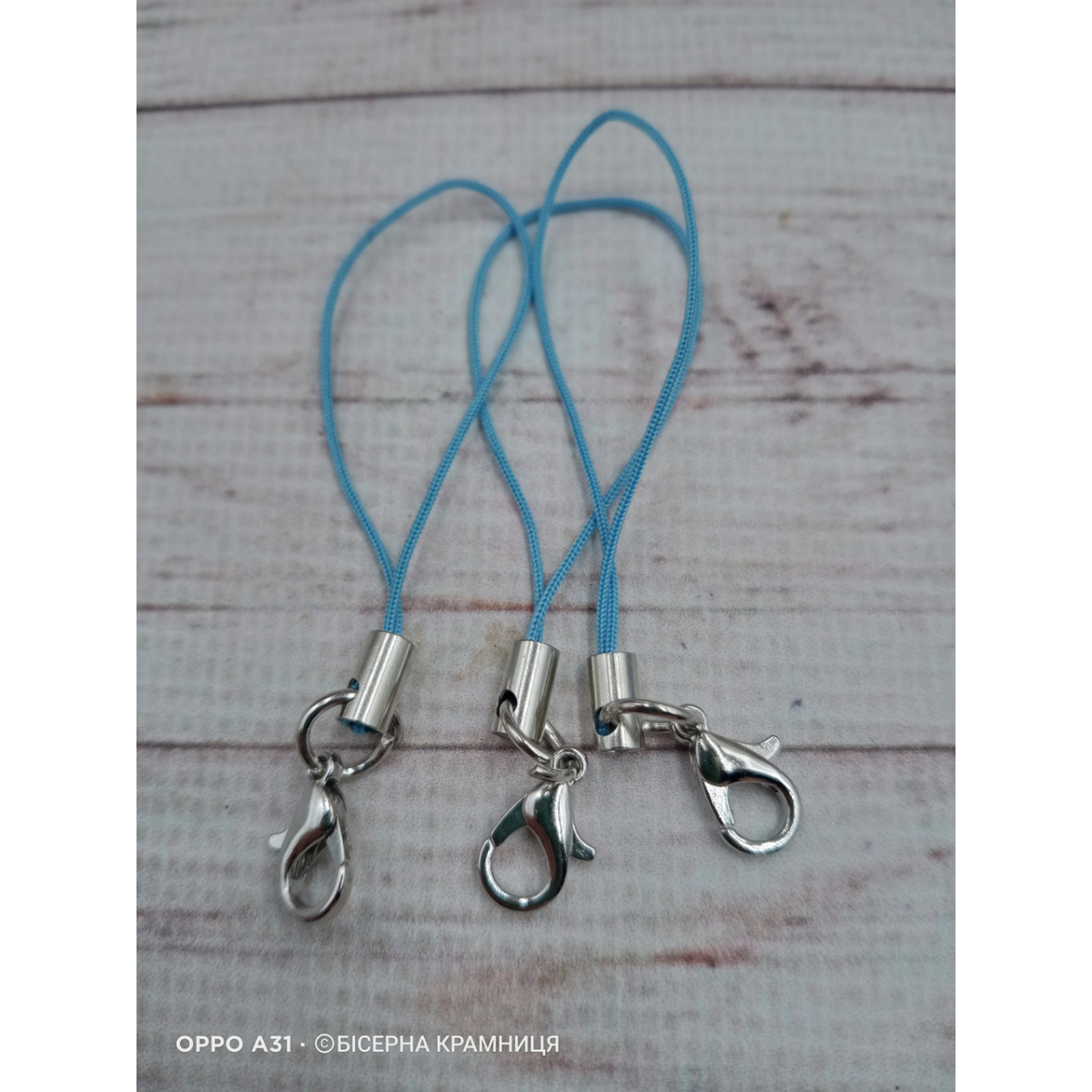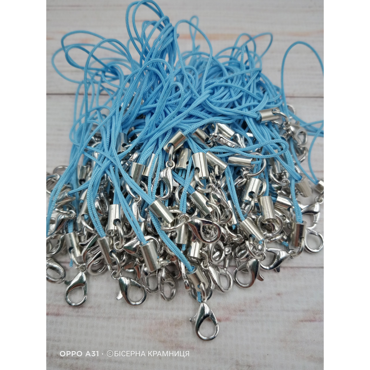 Блакитний шнурок з карабіном для телефону, брелока