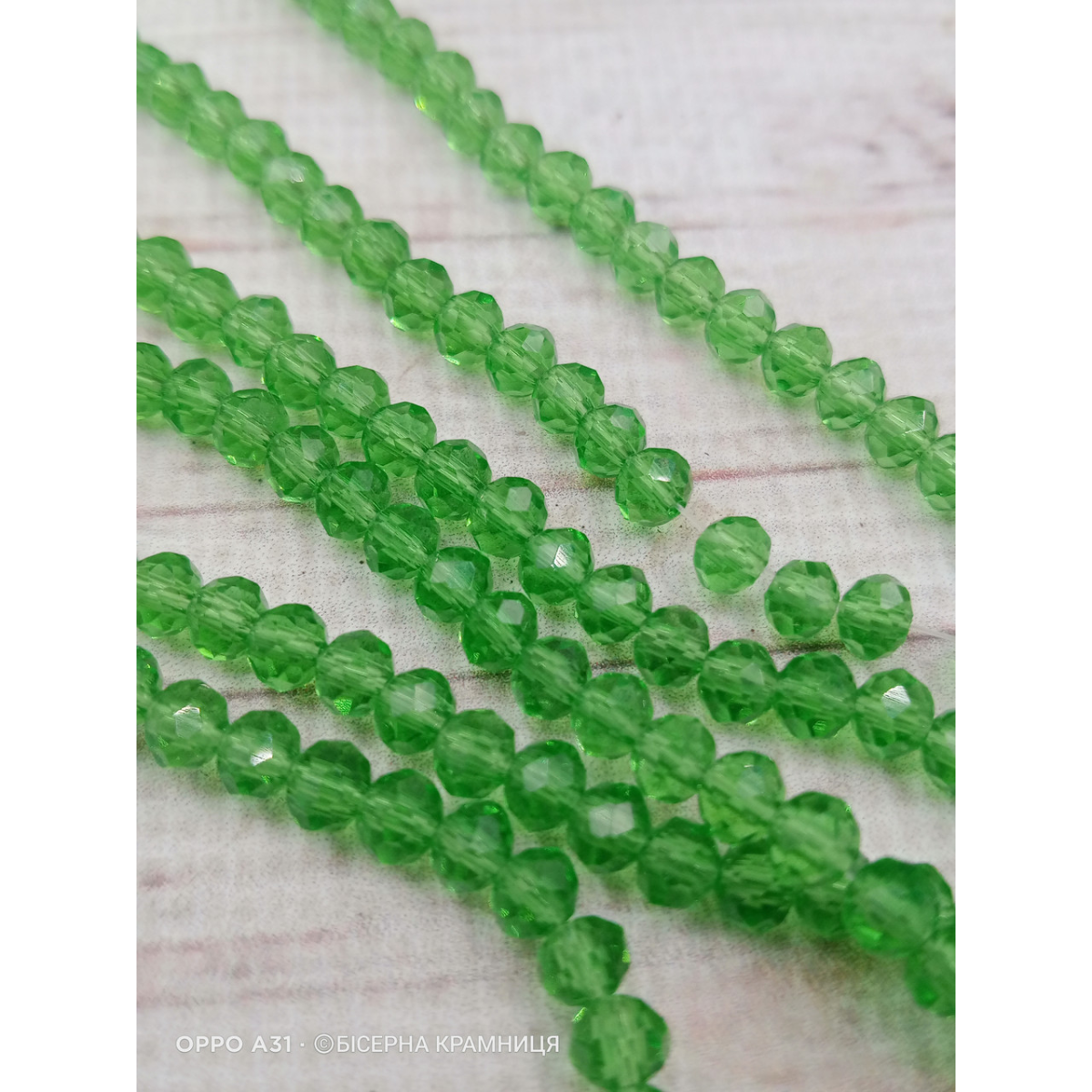 Ронделі, розмір 4*3 мм. Світло-зелені прозорі