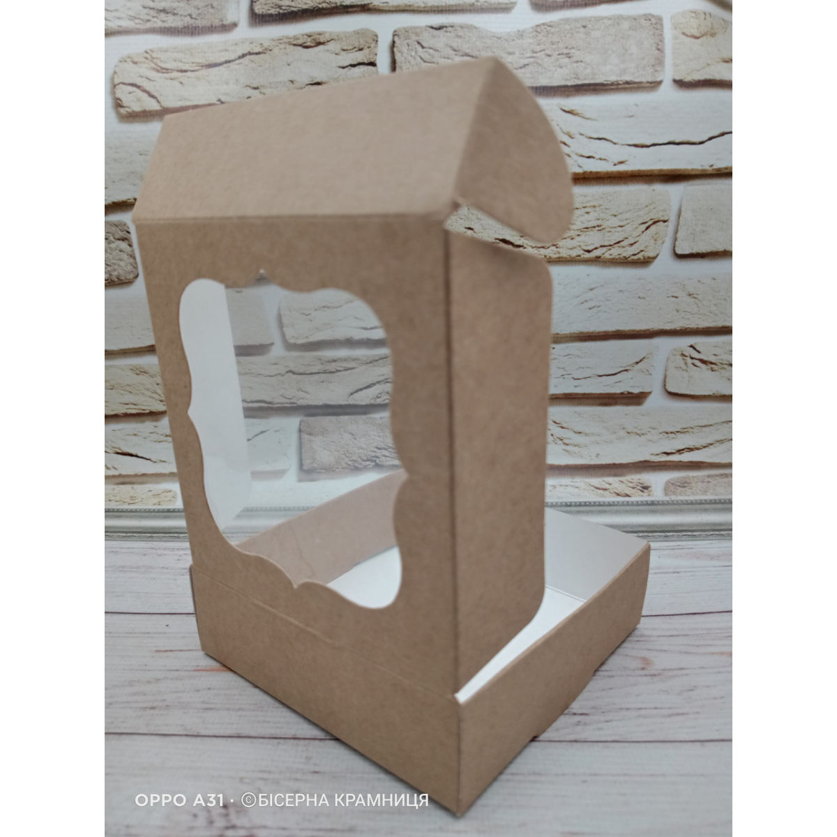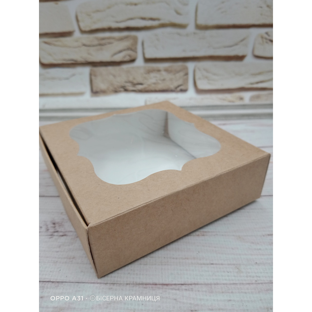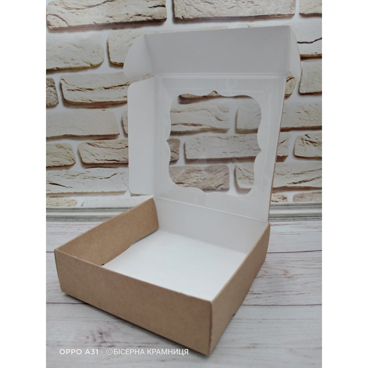 Самозбірна крафтова коробочка з віконцем, розмір 100*100*30 мм