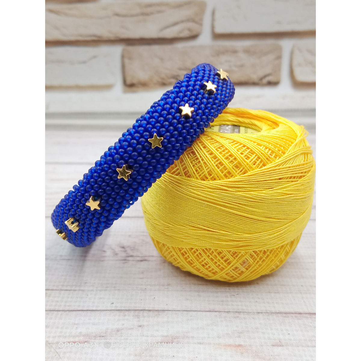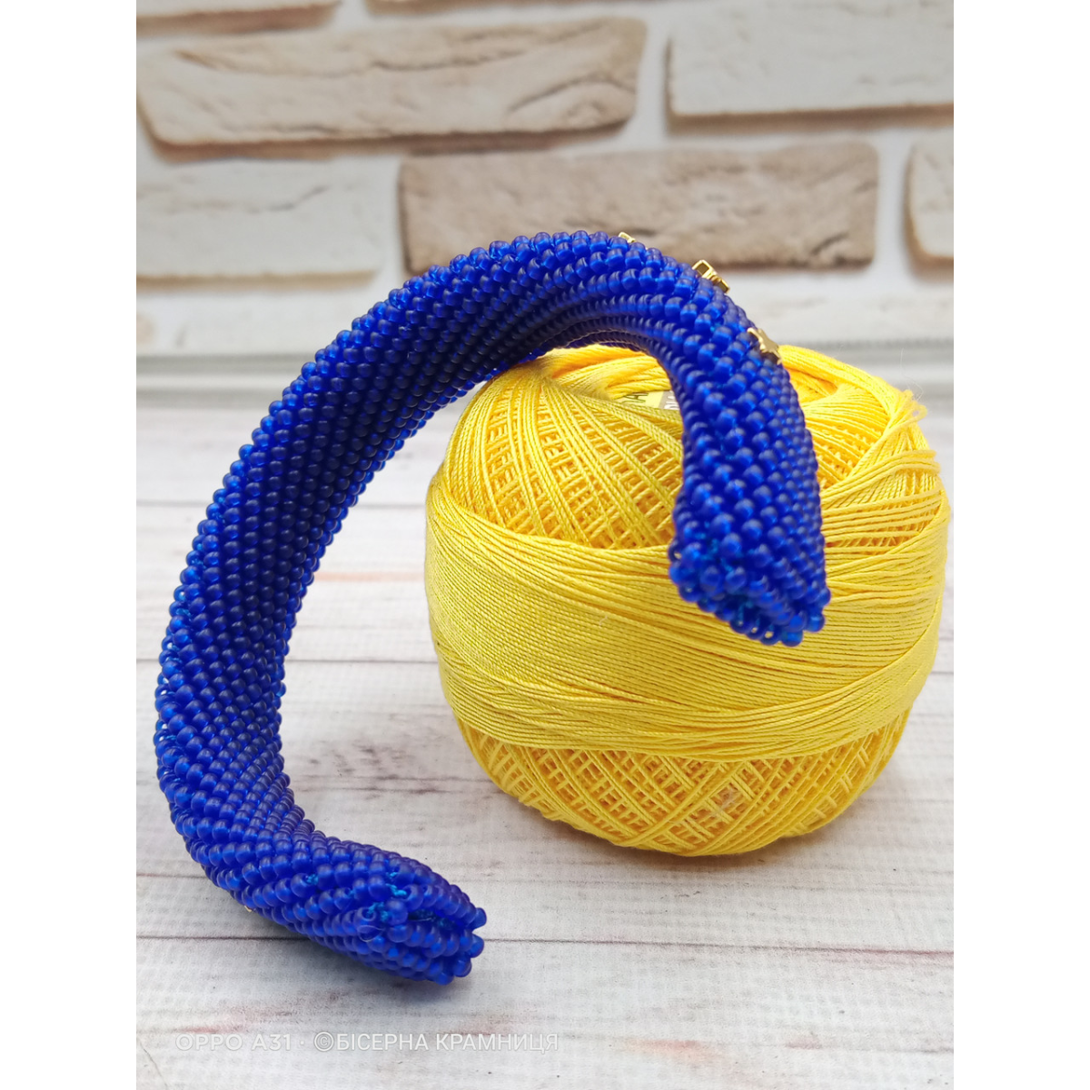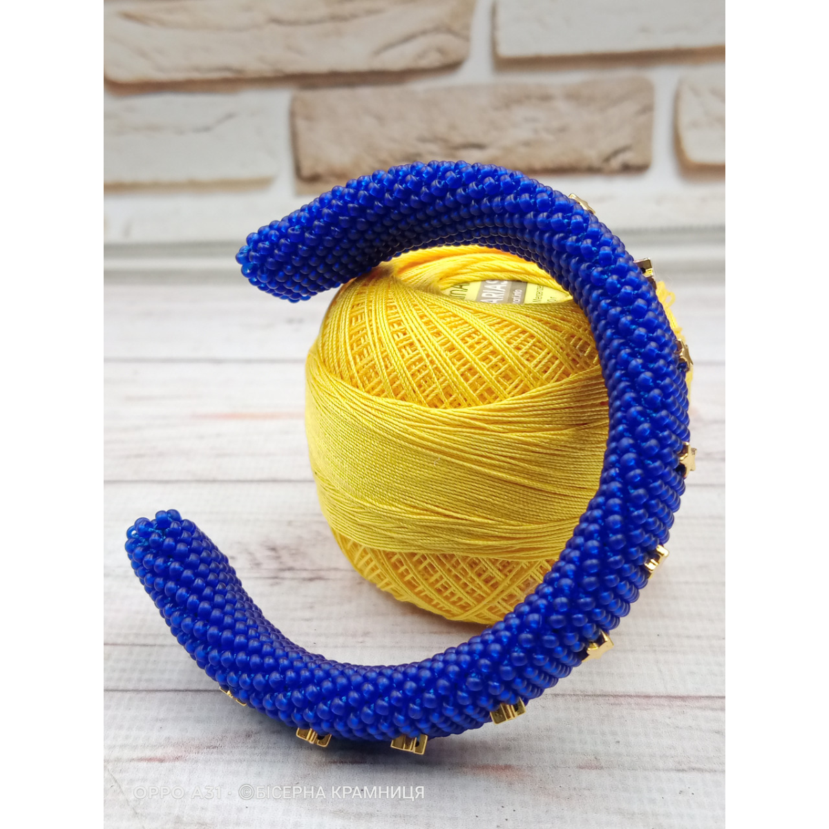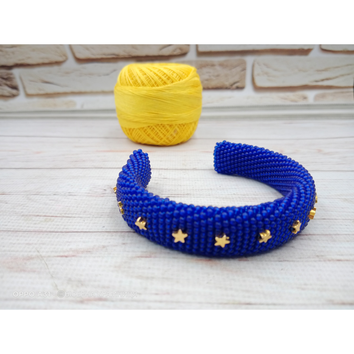 Браслет із чеського бісеру першого гатунку та гематитових бусин із покриттям. Без застібки, на металевій основі.