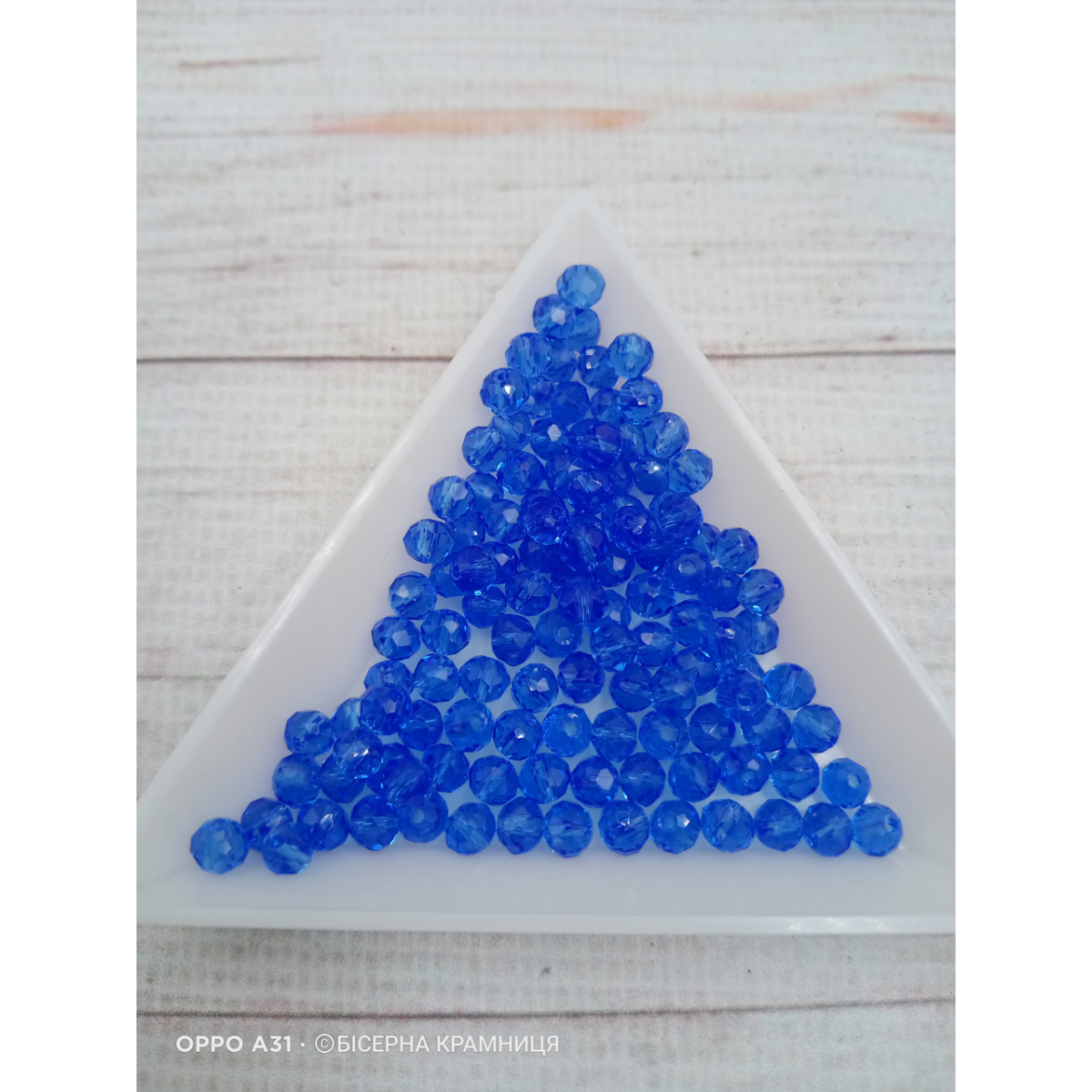 Ронделі, розмір 4*3 мм. Прозорі темно-блакитні