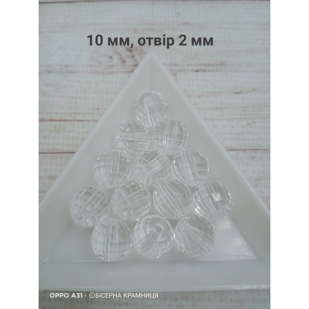 Прозорі акрилові намистини Куля Гранована, 10 мм, 250 грамів