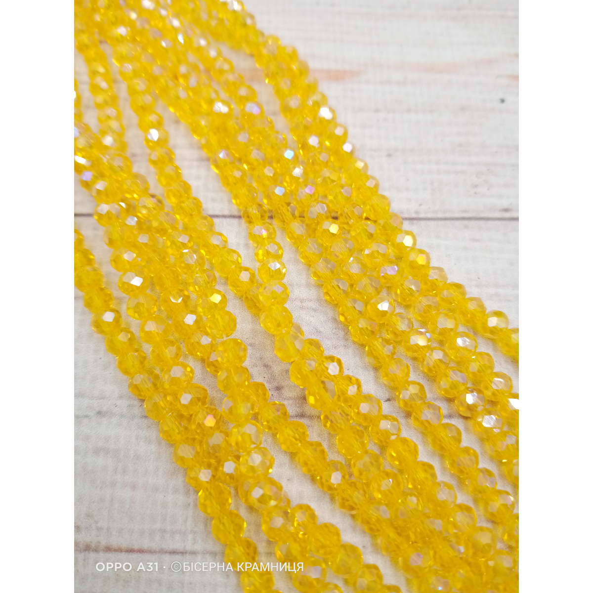 Ронделі, розмір 4*3 мм. Темно-жовті прозорі з райдужним покриттям