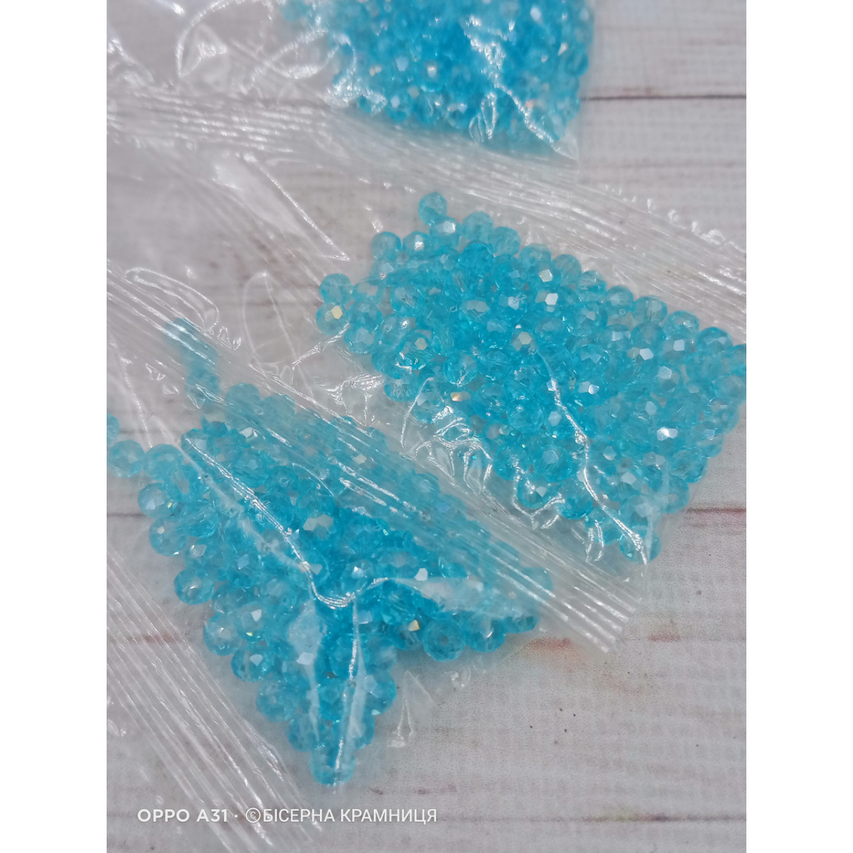 Ронделі, розмір 4*3 мм. Аквамаринові прозорі