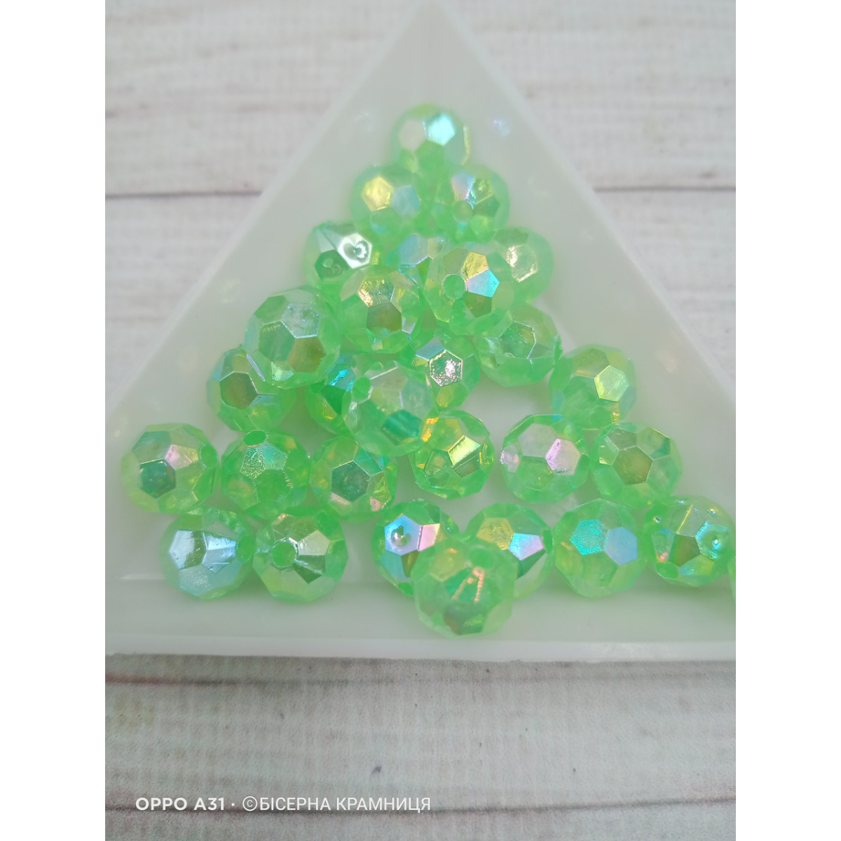 Прозорі райдужні салатові акрилові намистини Куля Гранована, 8 мм, 250 грамів
