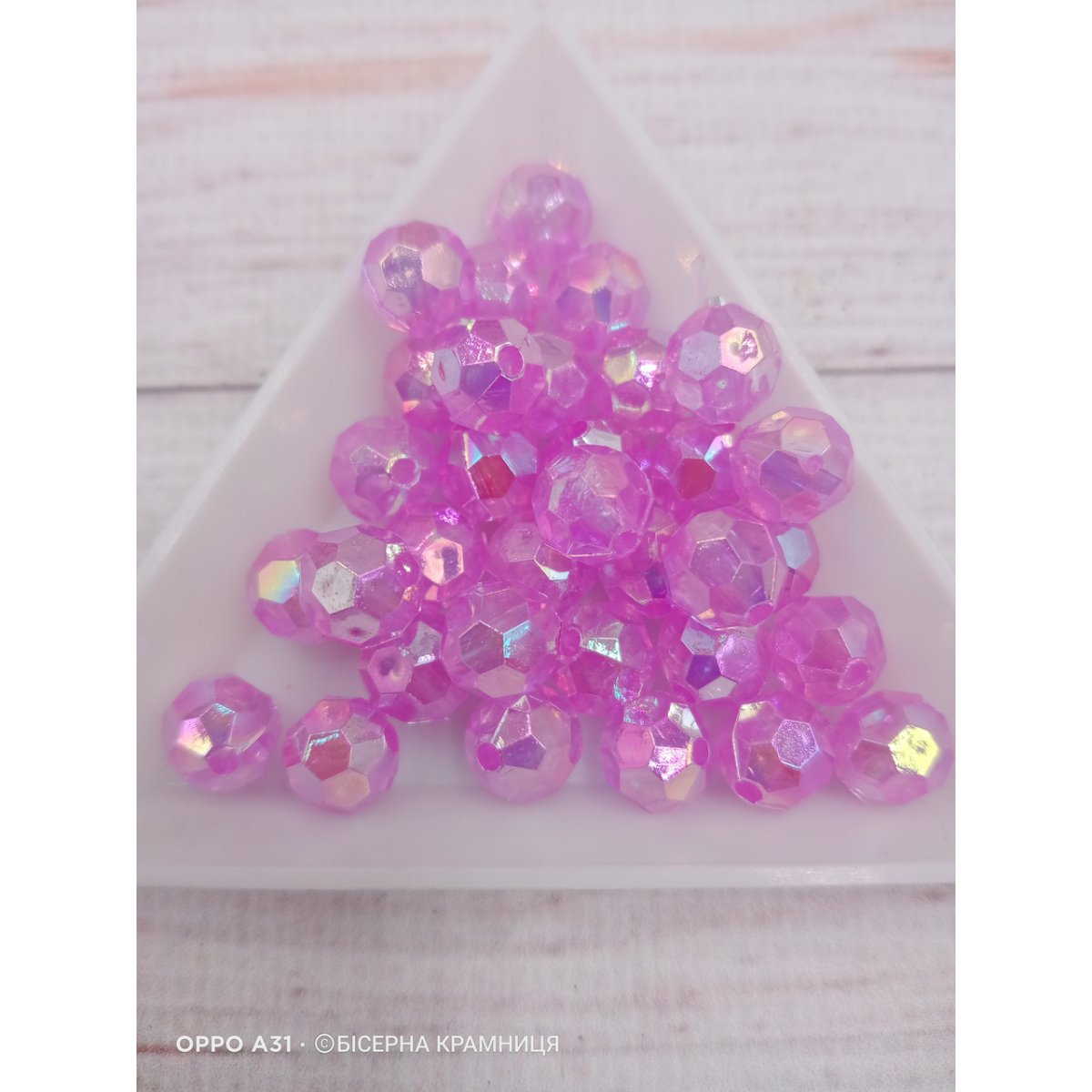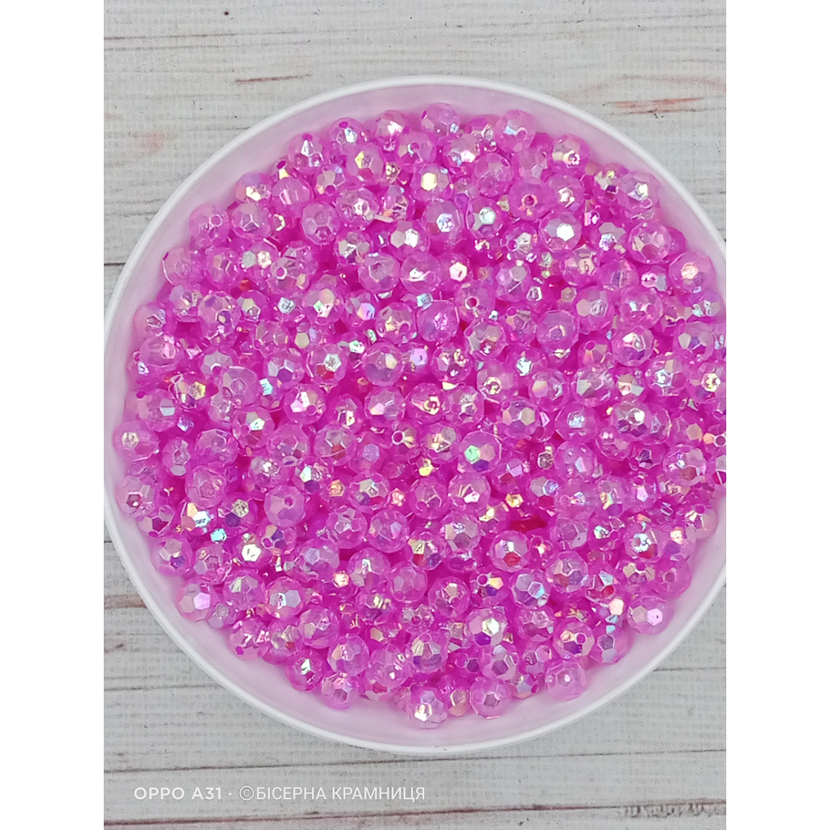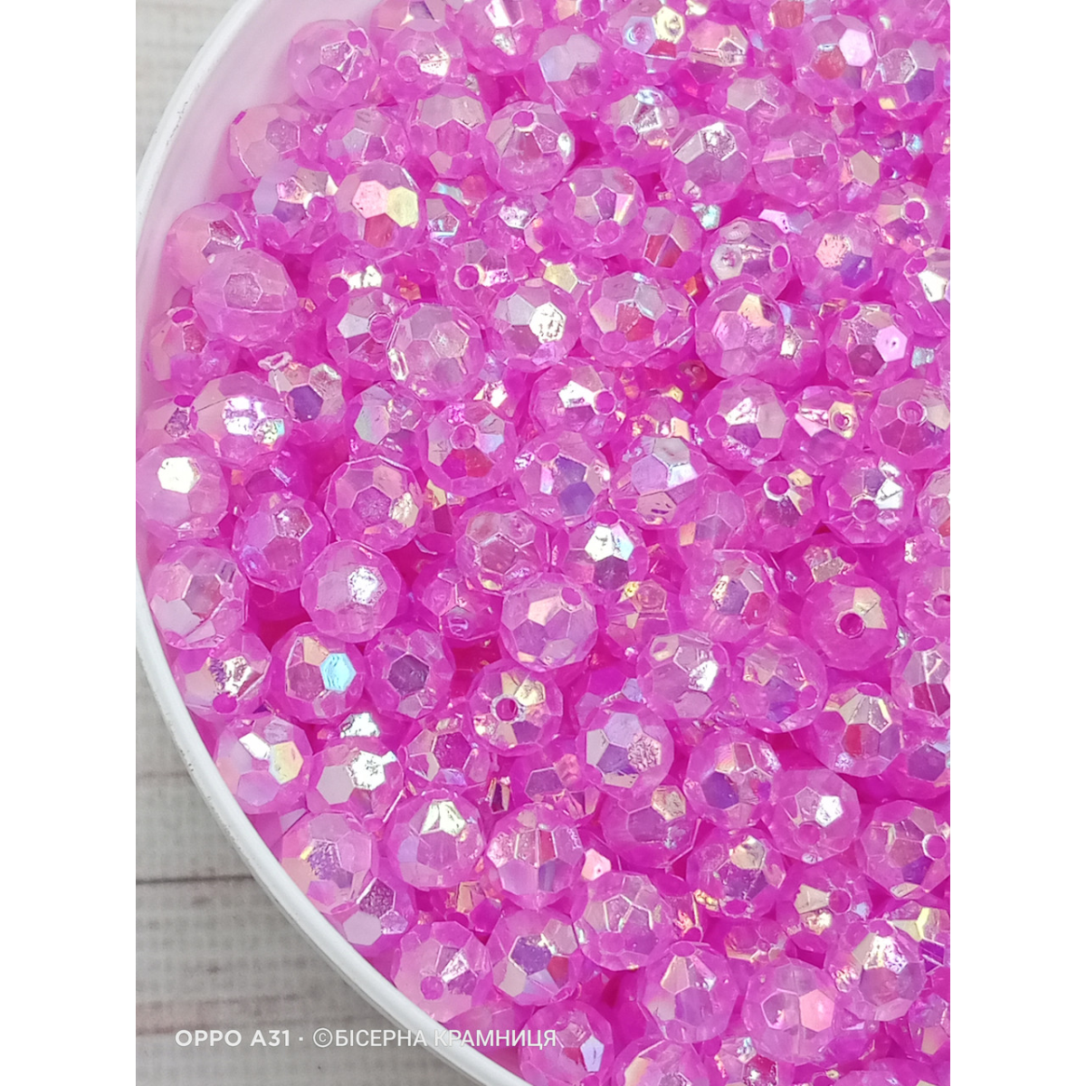 Прозорі райдужні рожеві акрилові намистини Куля Гранована, 8 мм, 250 грамів