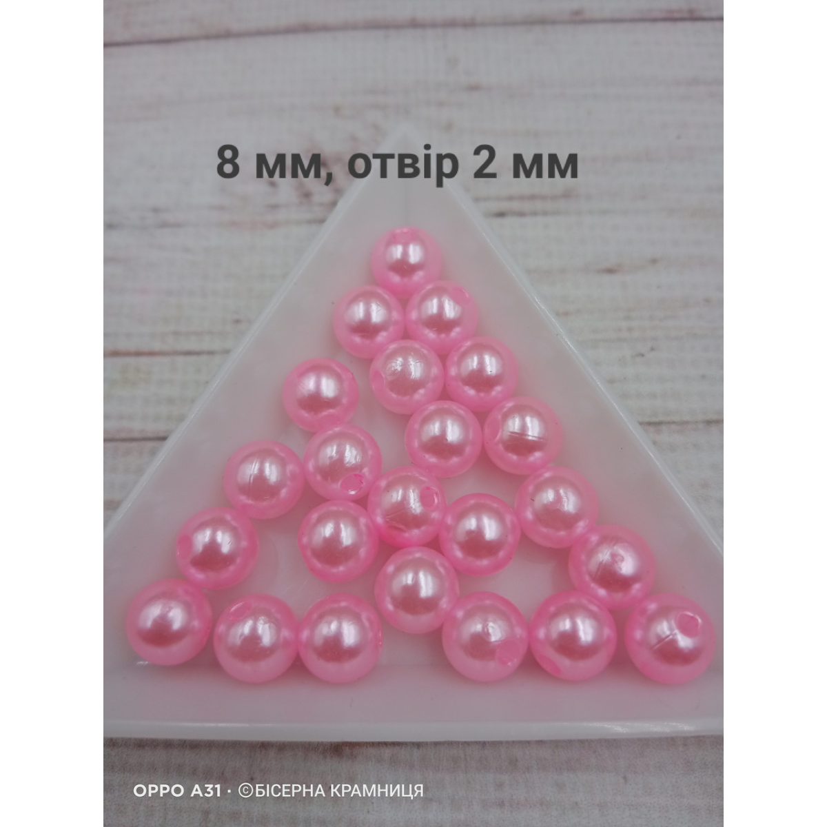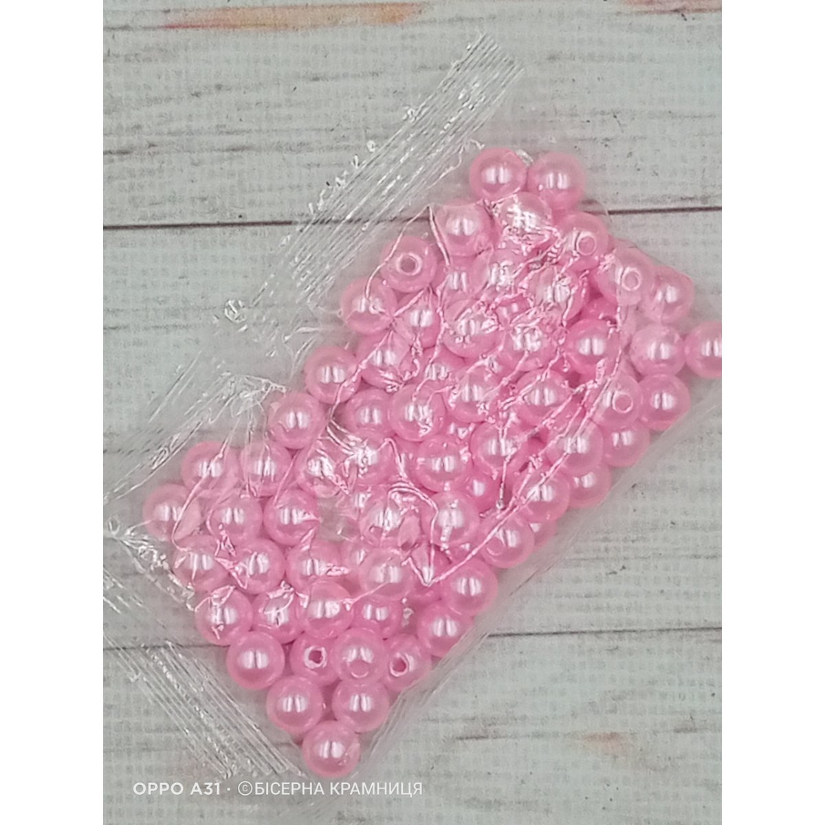 Перлинні пластикові рожеві намистини, 8 мм. 20 грамів
