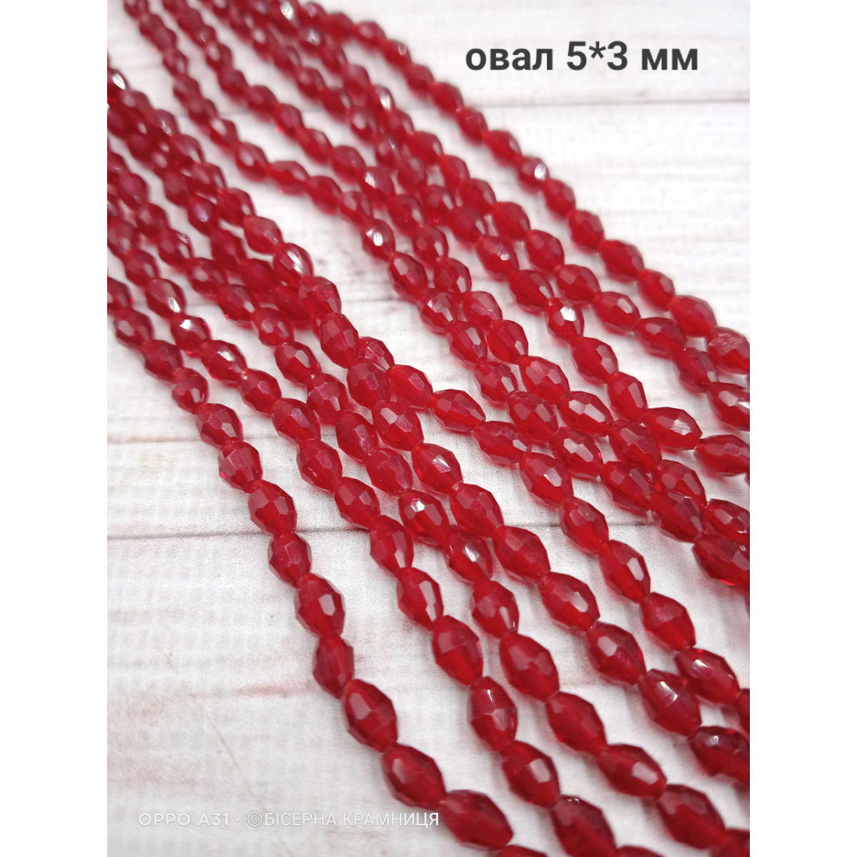 Намистини-овал, 5*3 мм. Червоні прозорі