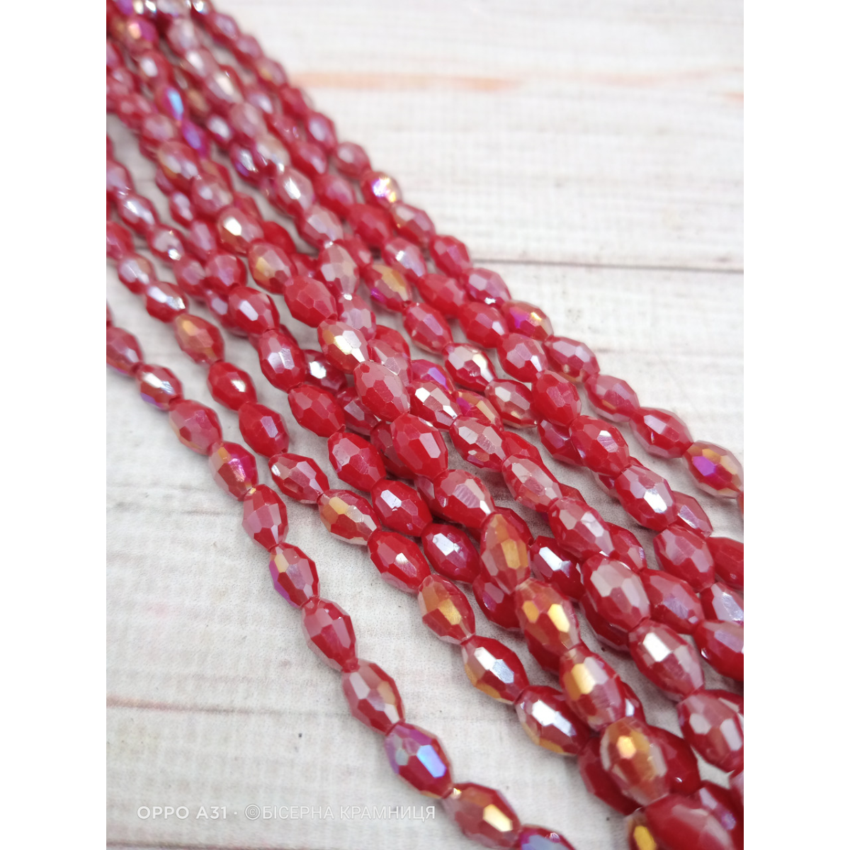 Намистини-овал, 5*3 мм. Червоні непрозорі з райдужним покриттям