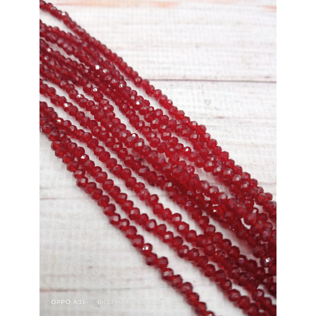 Ронделі, розмір 3*2 мм. Бордові прозорі