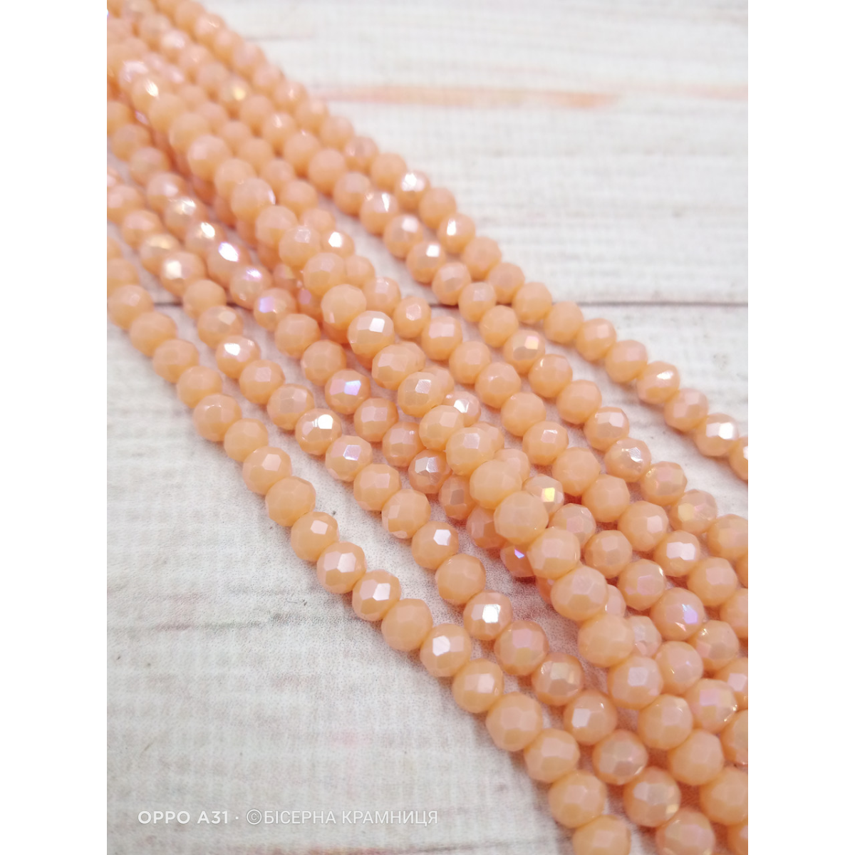 Намистини Ронделі грановані, розмір 4*3 мм, скло. На нитці або в упаковці 116-120 намистин. Ціна за нить (упаковку).