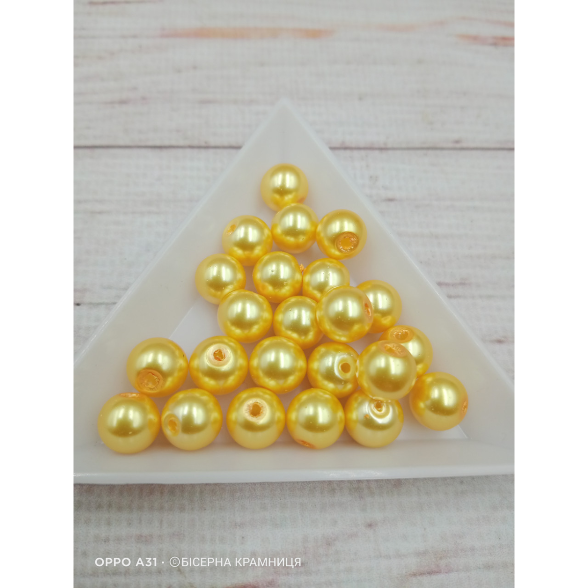 Майорка 8 мм, круглі намистини, скло. Колір жовто-золотий