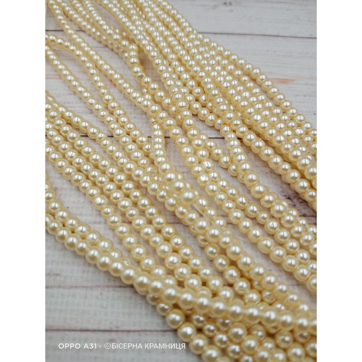 Майорка 4 мм, круглі намистини, скло. Колір бежевий