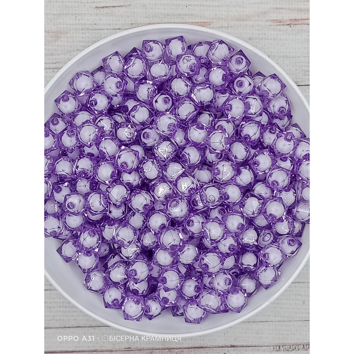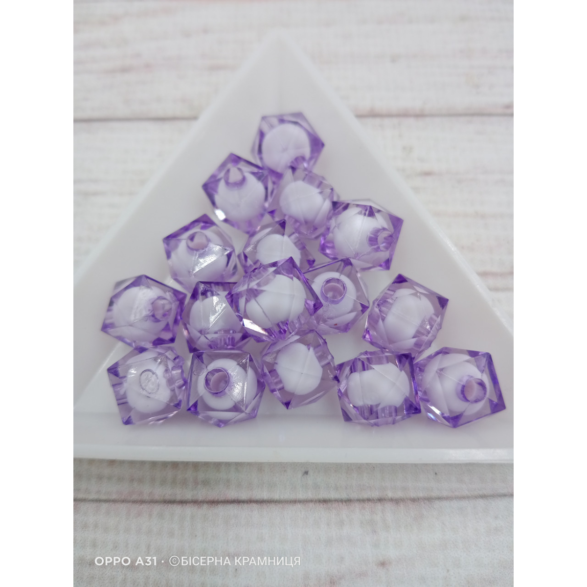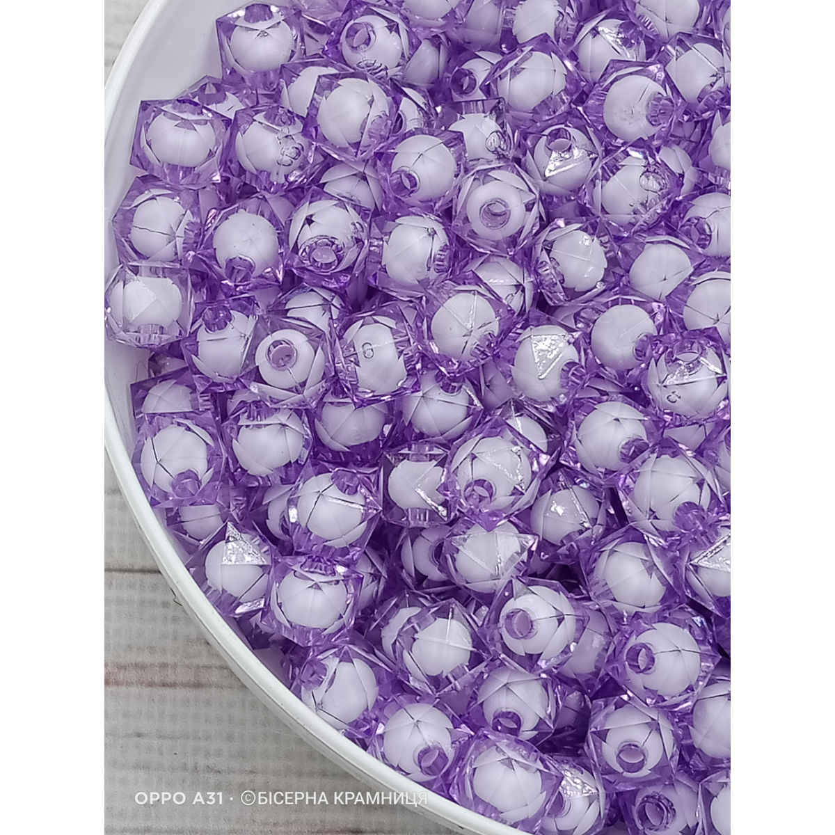 Світлі бузкові акрилові намистини Куб Гранений з білою намистиною всередині, 10 мм, 250 грамів