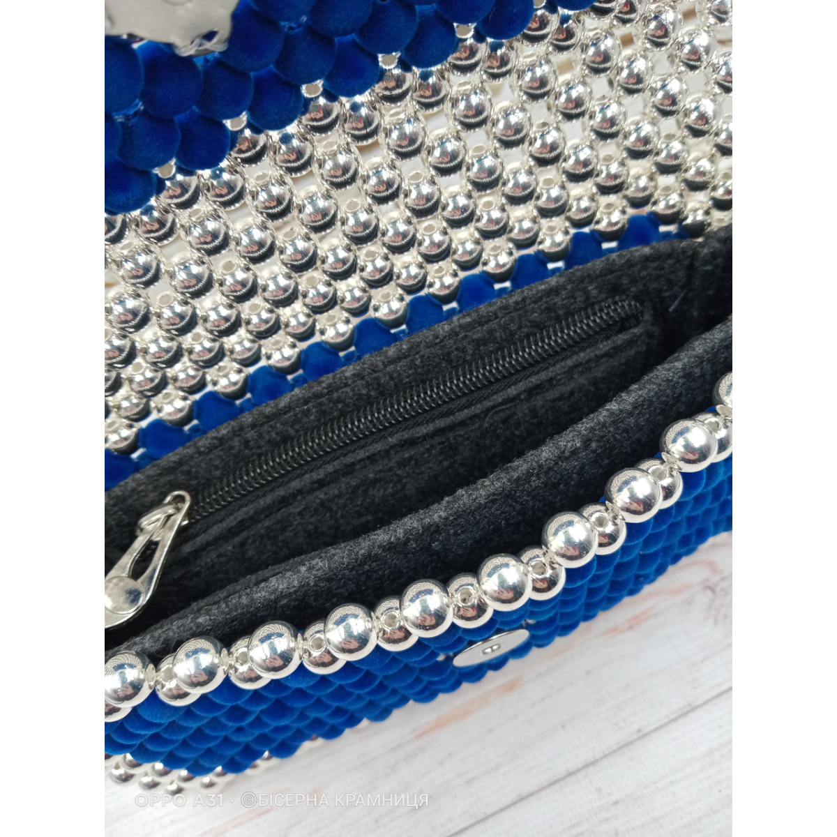 Сумочка з акрилових та якісних оксамитових намистин. Сині оксамитові бусинки на дотик ніжні, пухнасті, бархаті...