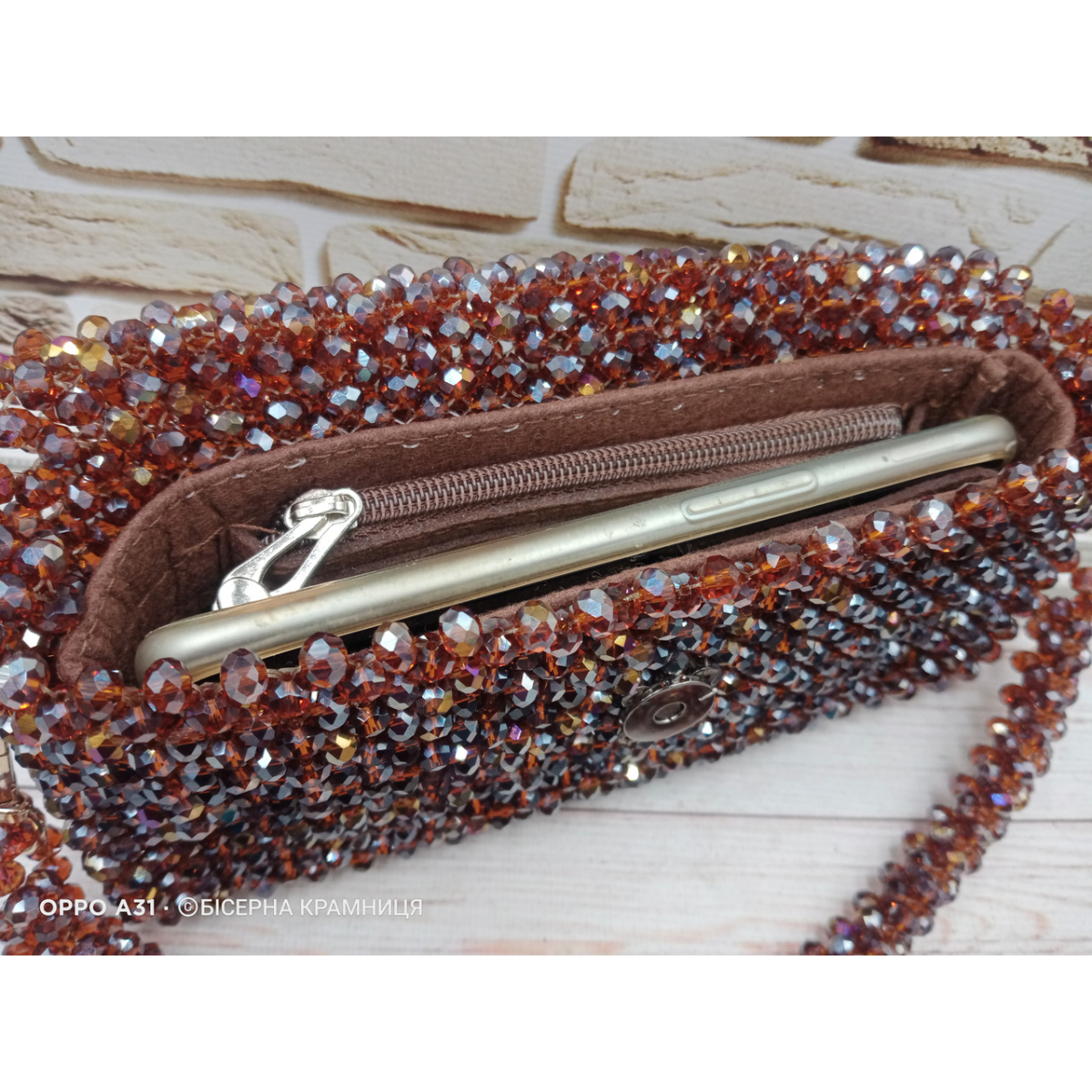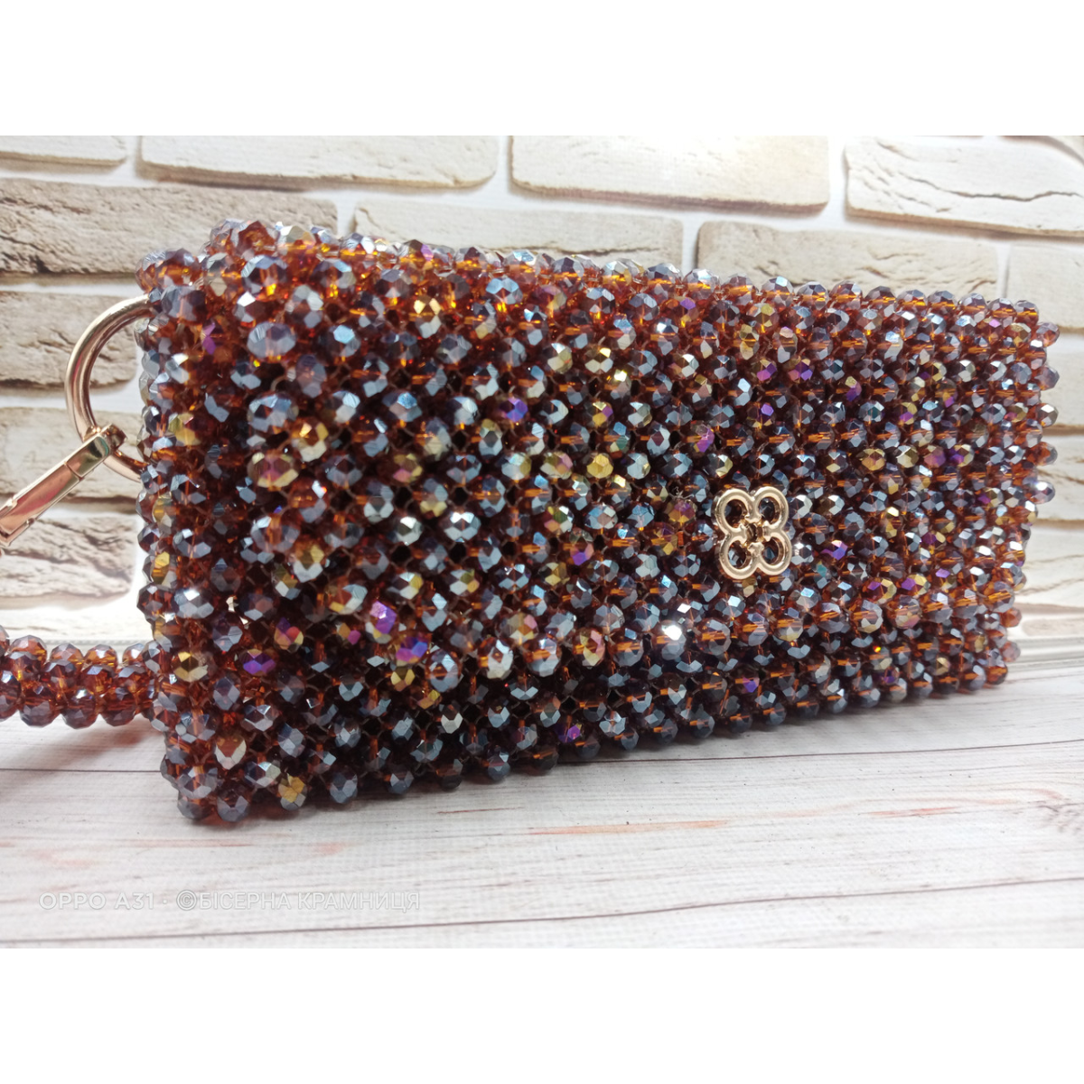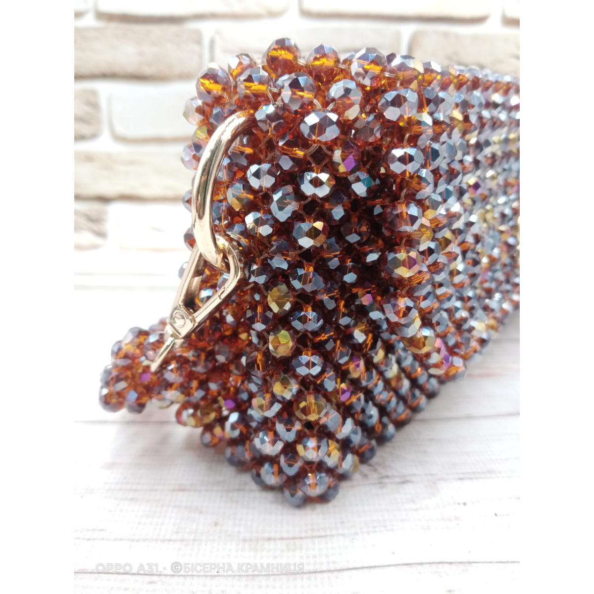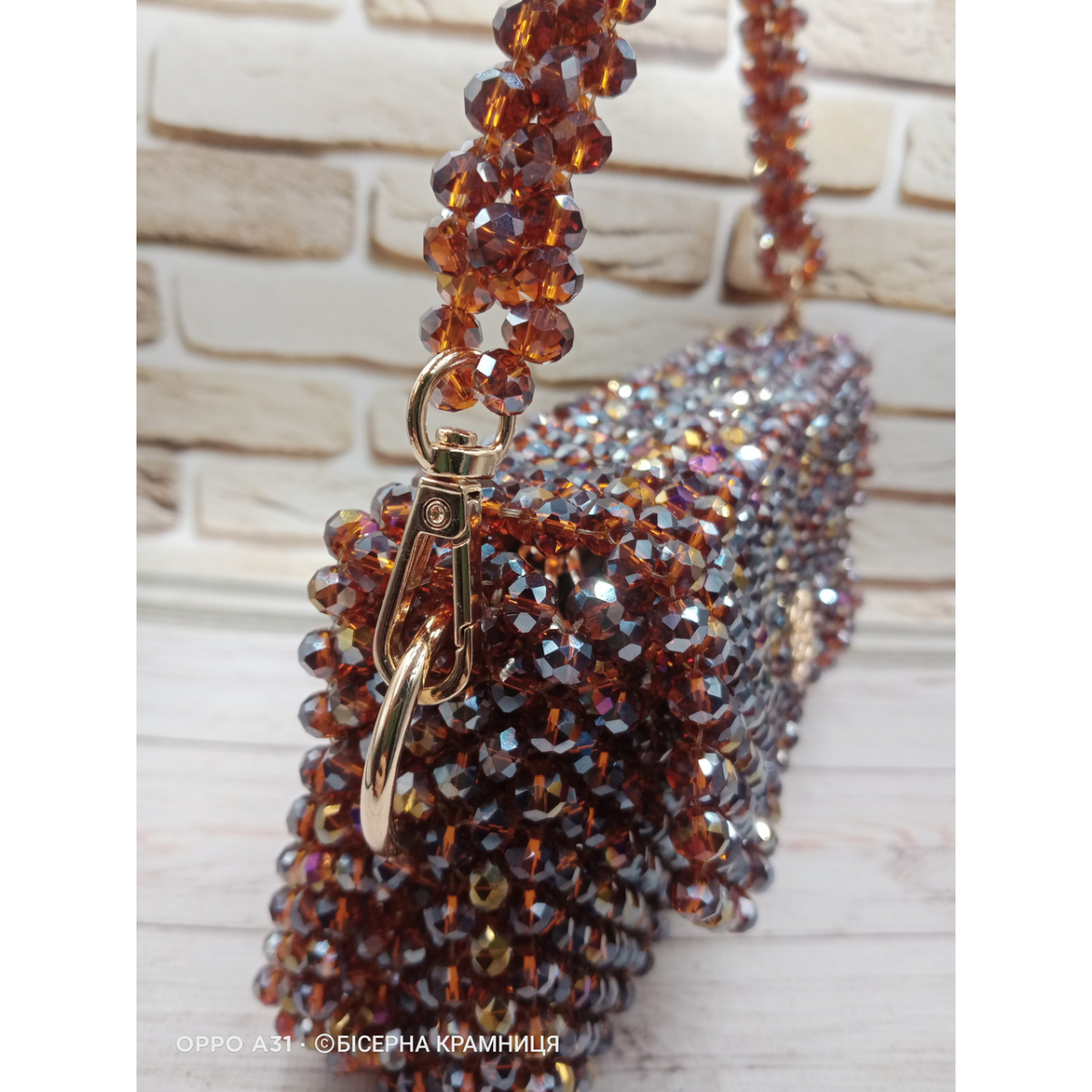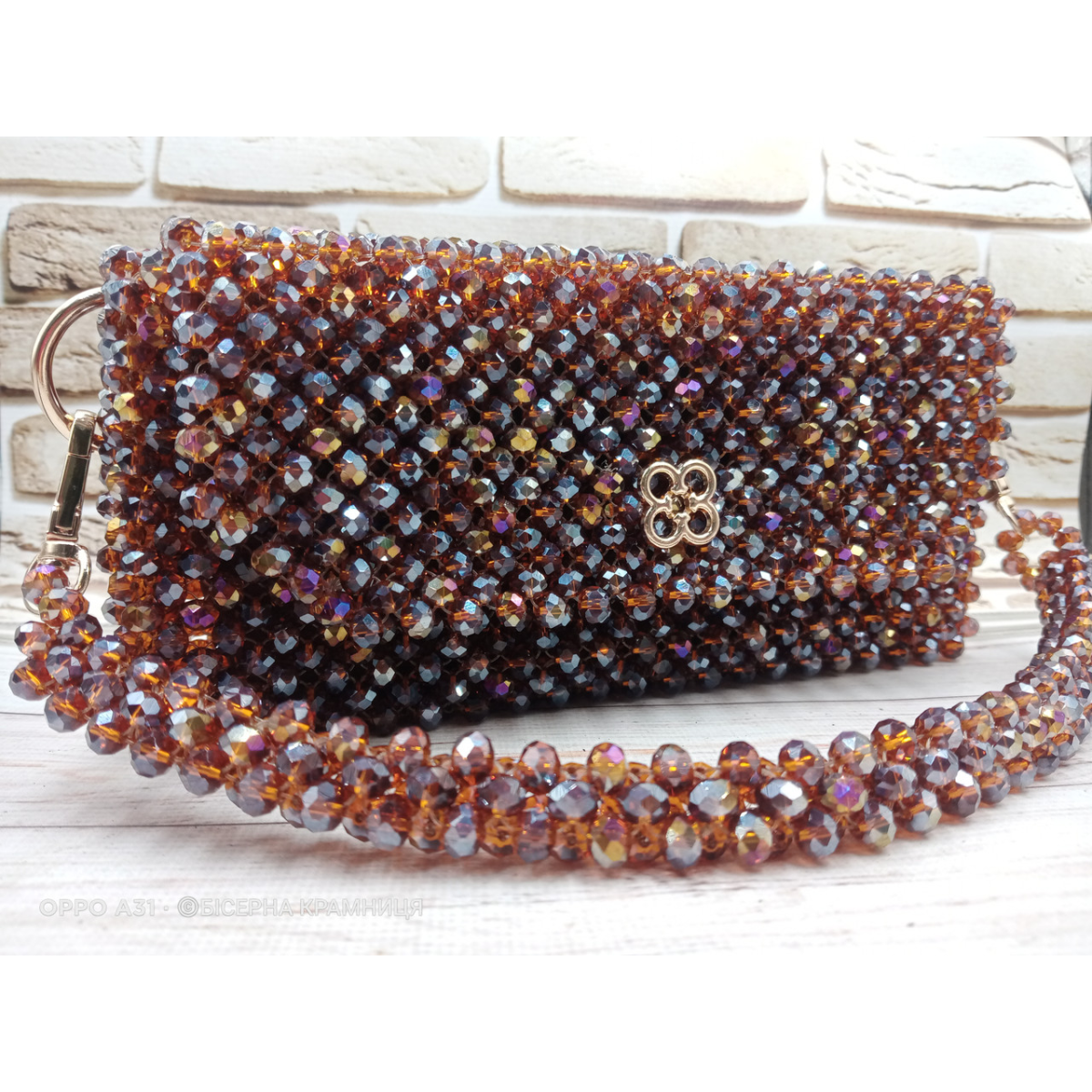 Осіння сяюча сумочка зі скляних ронделей 8*6 мм кольору темного меду.