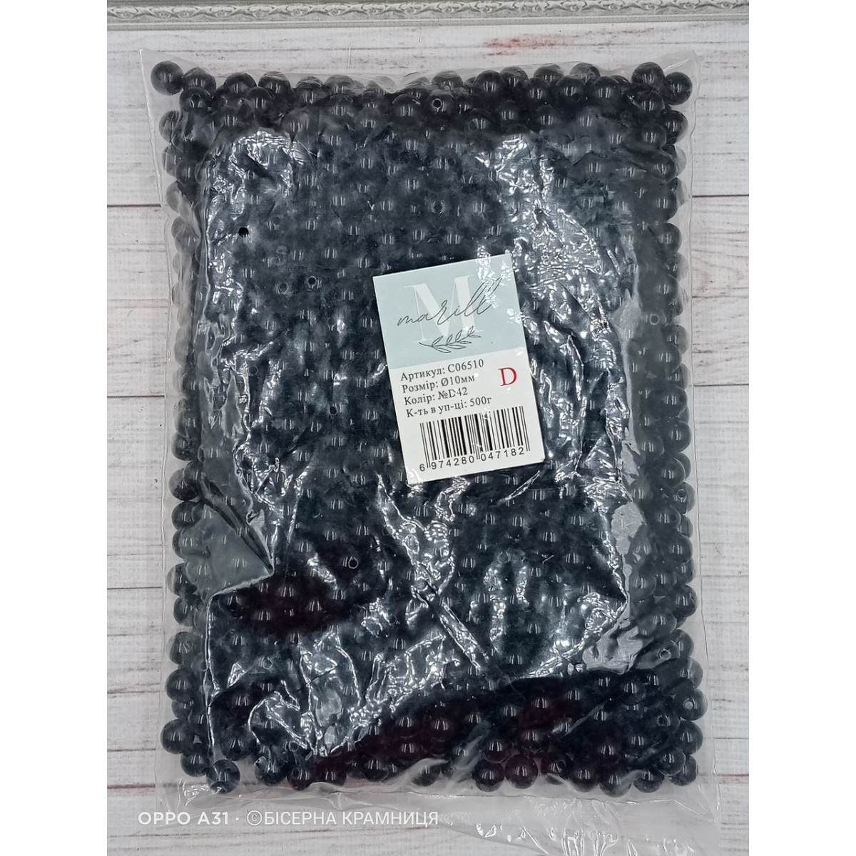 Перлинні чорні намистини, 10 мм. 500 грамів