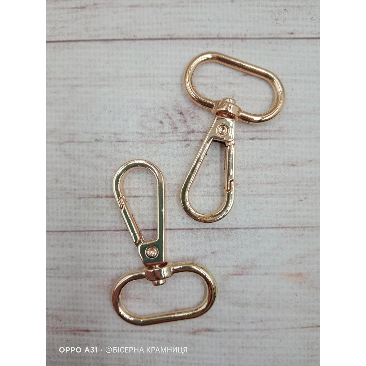 Пара карабінів для сумки, довжина 50 мм, колір натурального золота. Внутрішня ширина кільця 25 мм