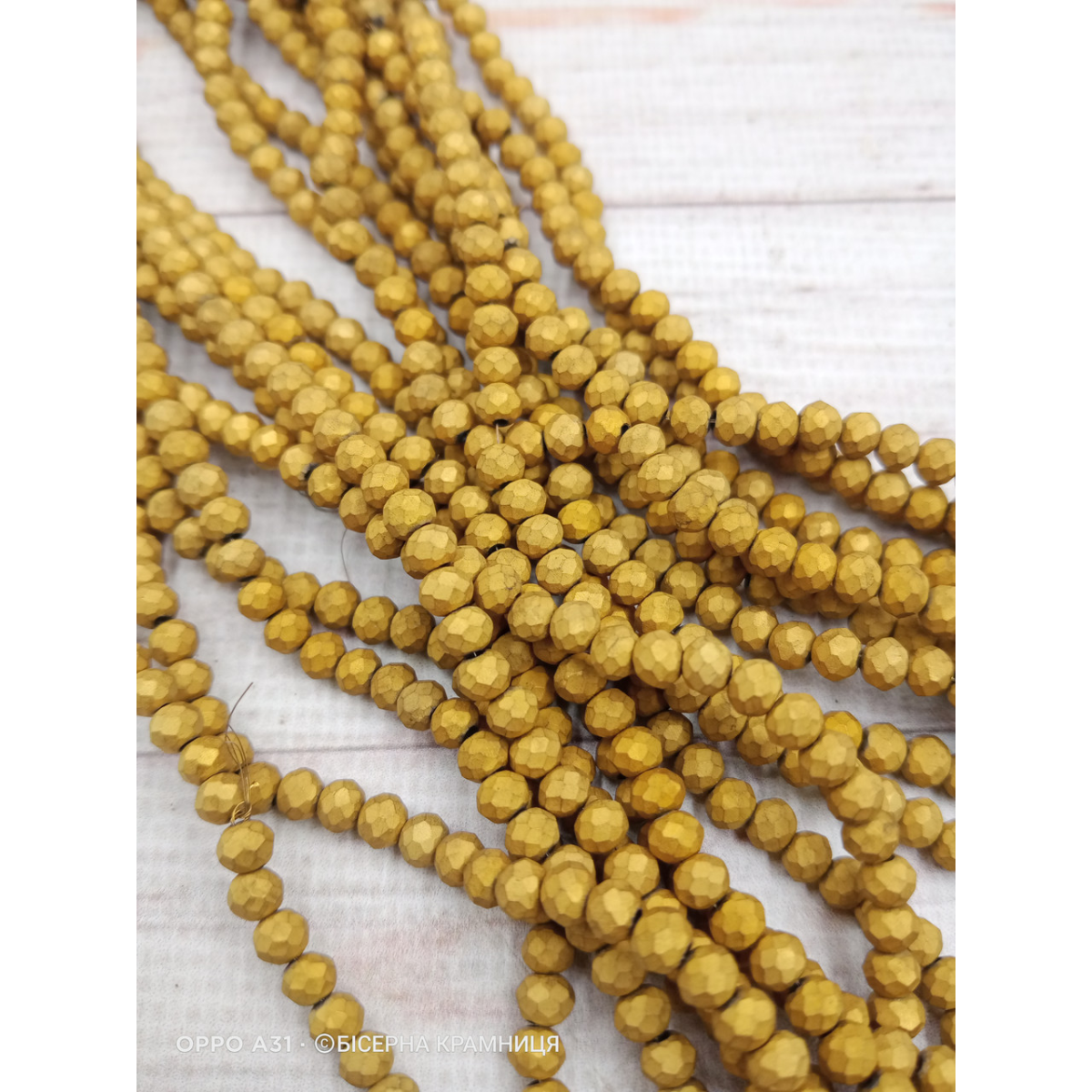 Намистини Ронделі грановані, розмір 4*3 мм, скло. На нитці або в упаковці 116-120 намистин. Ціна за нить (упаковку). Виробник Китай. Рекомендуємо замовляти намистини на один виріб з невеликим запасом, щоб уникнути нестачі і подальшого пошуку необхідного відтінку попередньої партії. Також звертаємо увагу, що через індивідуальні налаштування Вашого монітора можливі розбіжності в точності передачі кольорів.