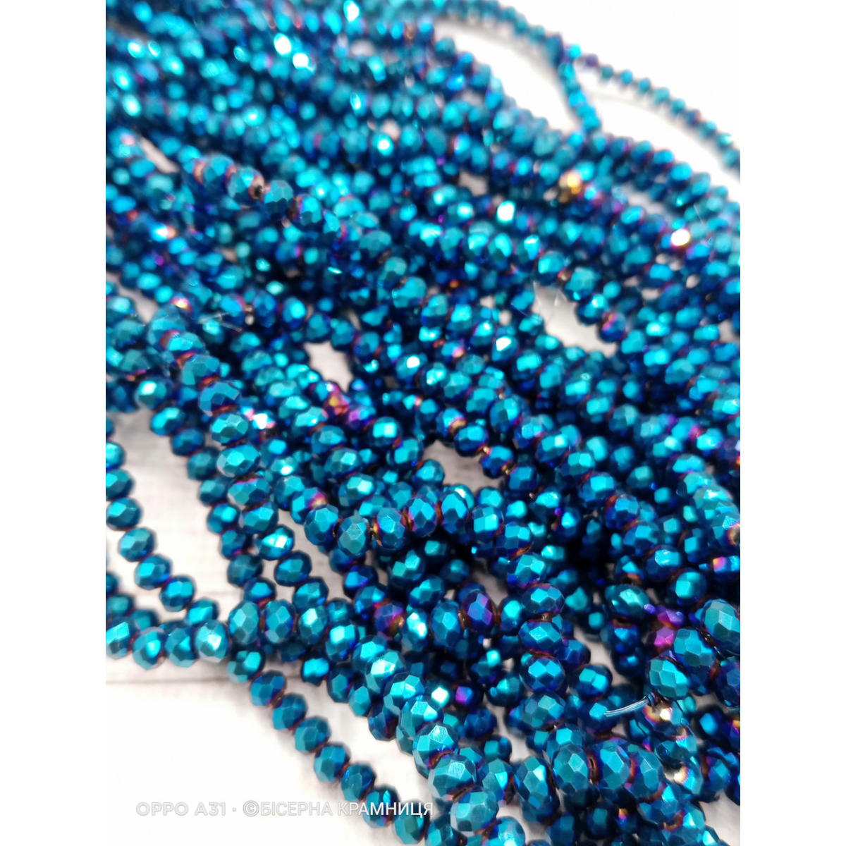 Ронделі, розмір 4*3 мм. Із синім блискучим напиленням, непрозорі