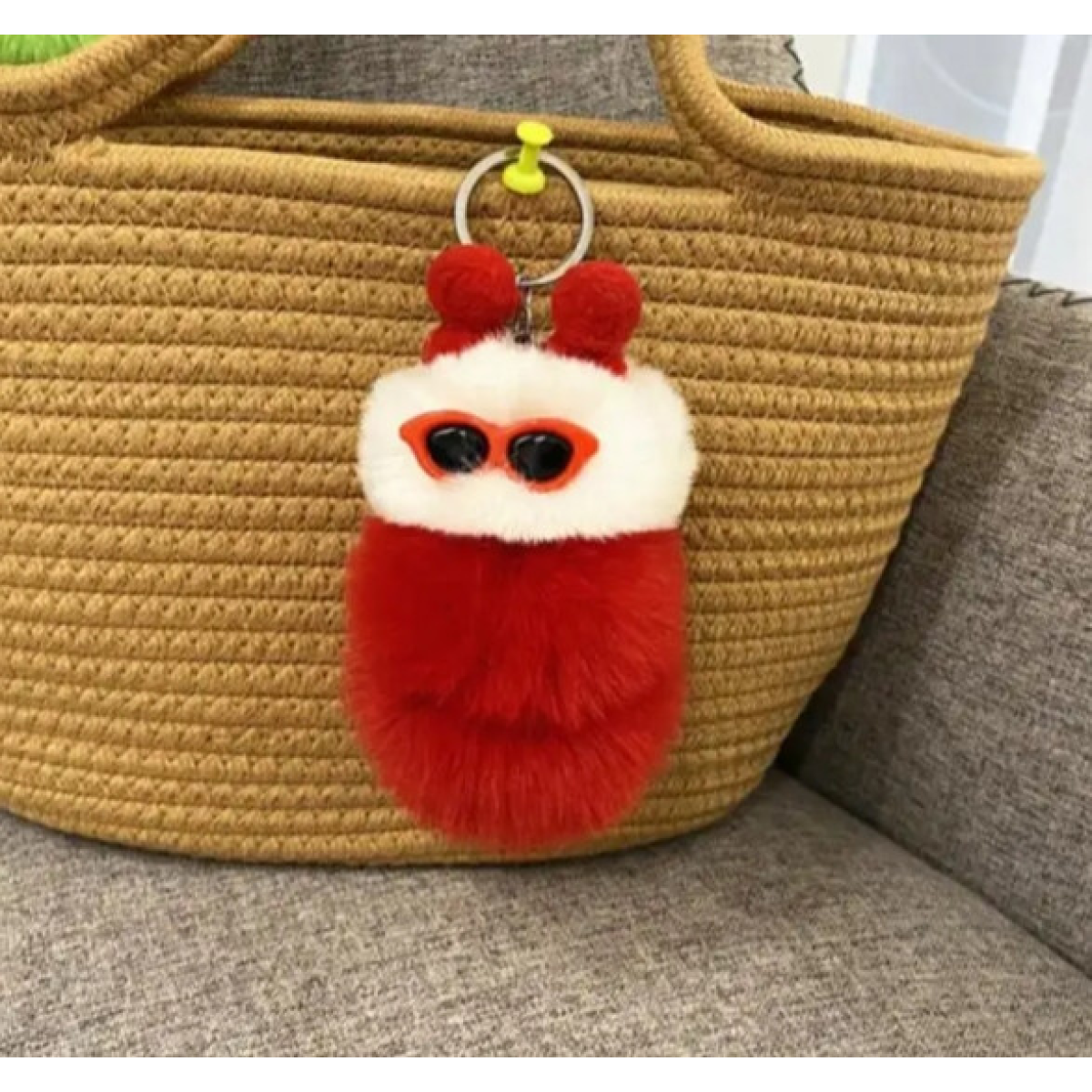 Дитячий брелок-підвіска зі штучного хутра для сумки, рюкзачка. Червоний з білим