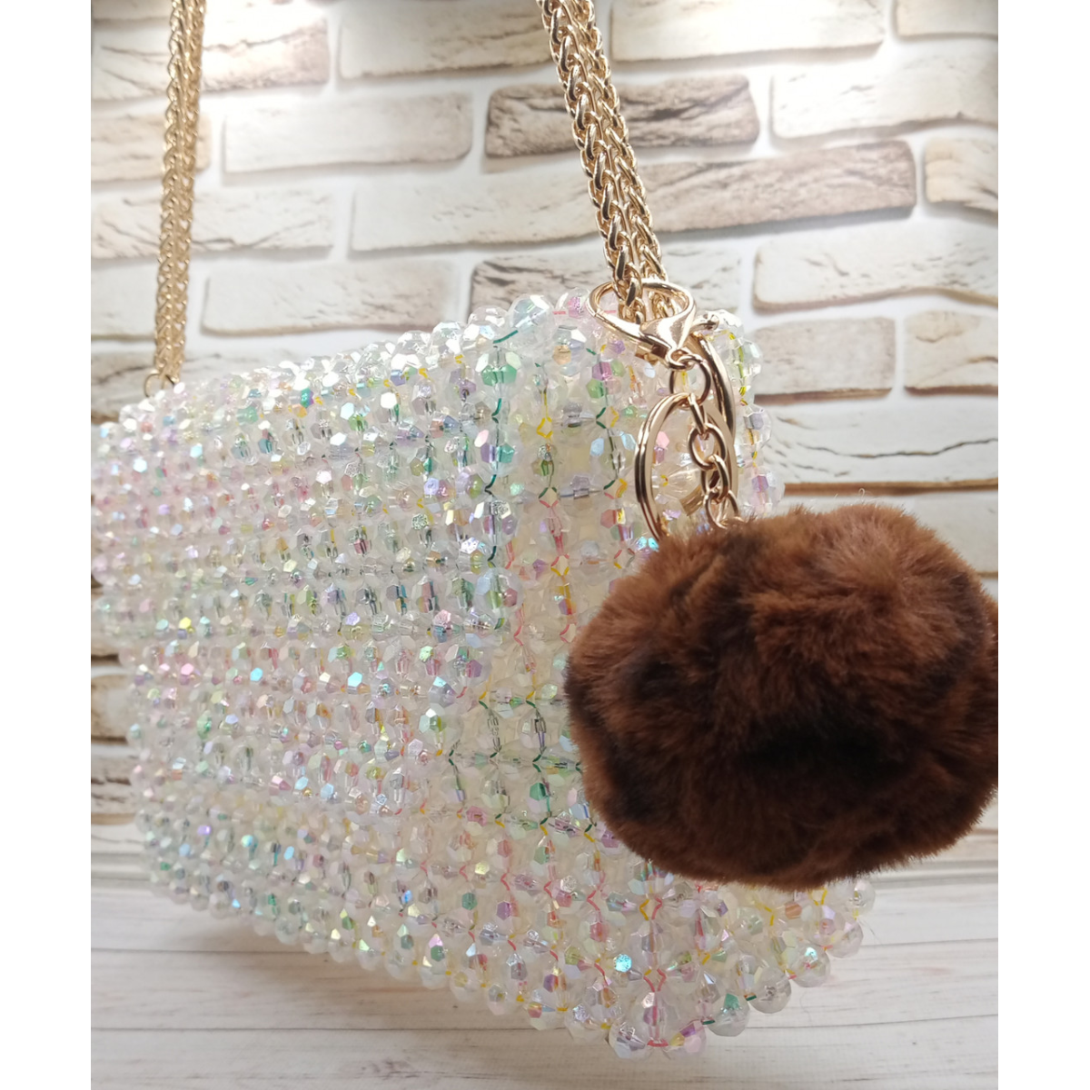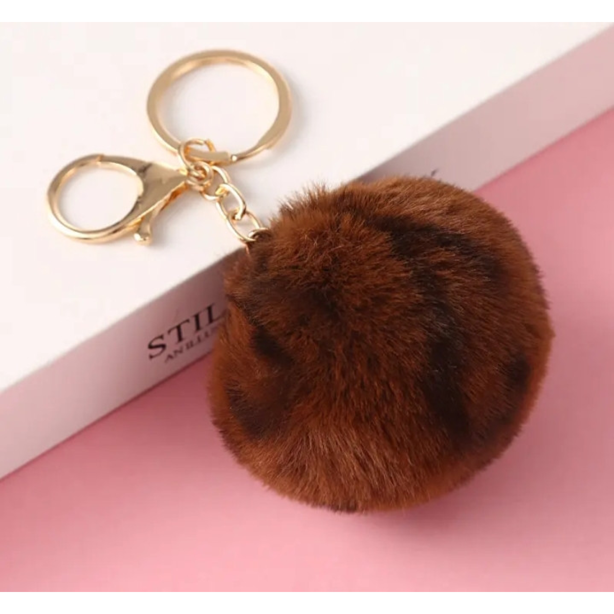 Брелок-помпон зі штучного хутра для ключів, сумки, рюкзака. Коричневий