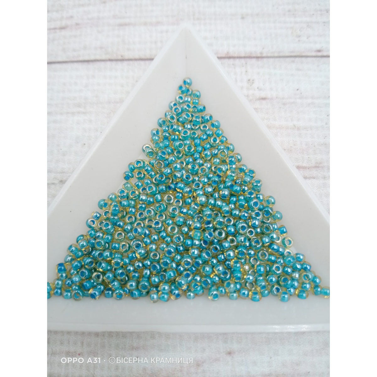 11024 бісер №10 Preciosa (Чехія) 5 грамів. Прозорий жовтий з синьою серединкою