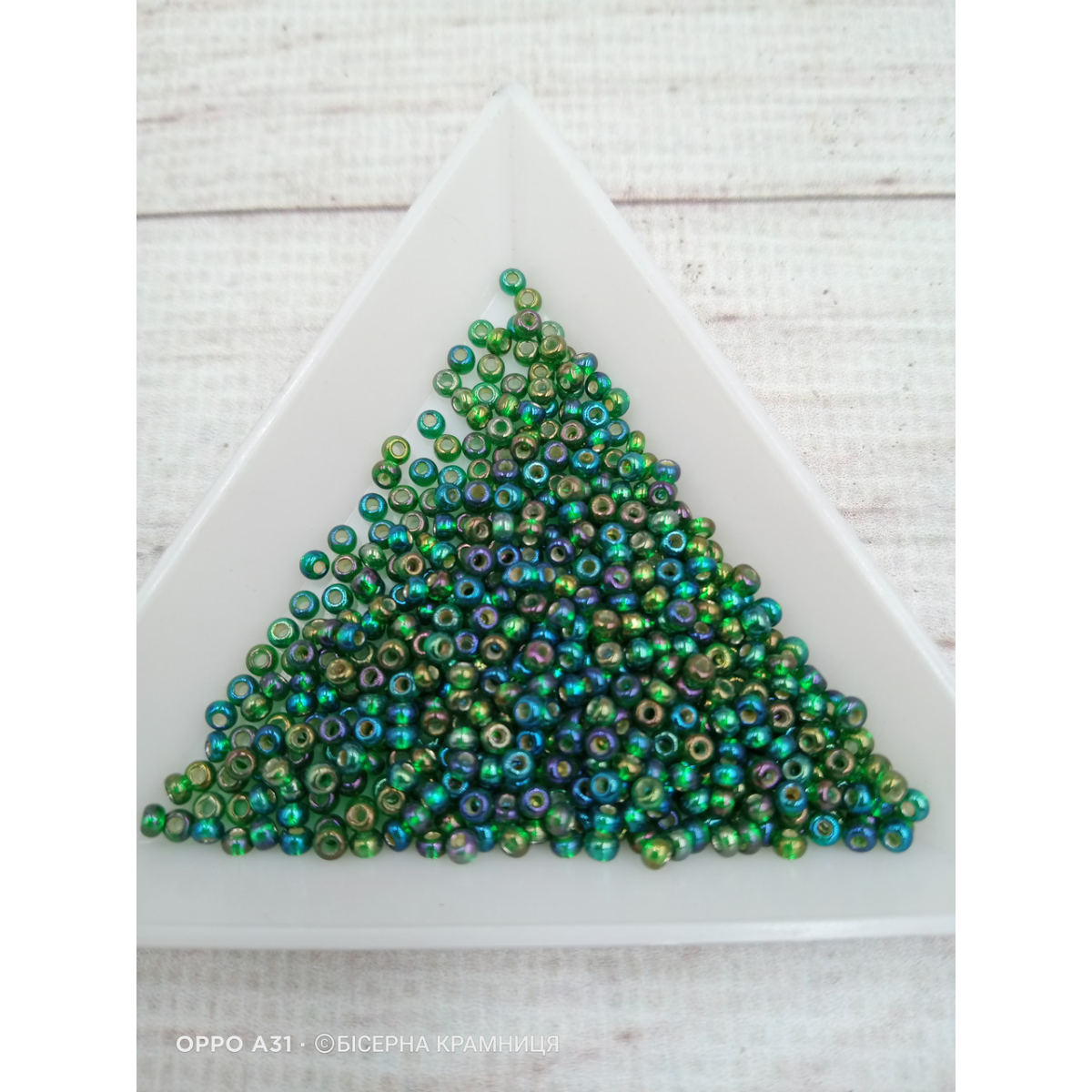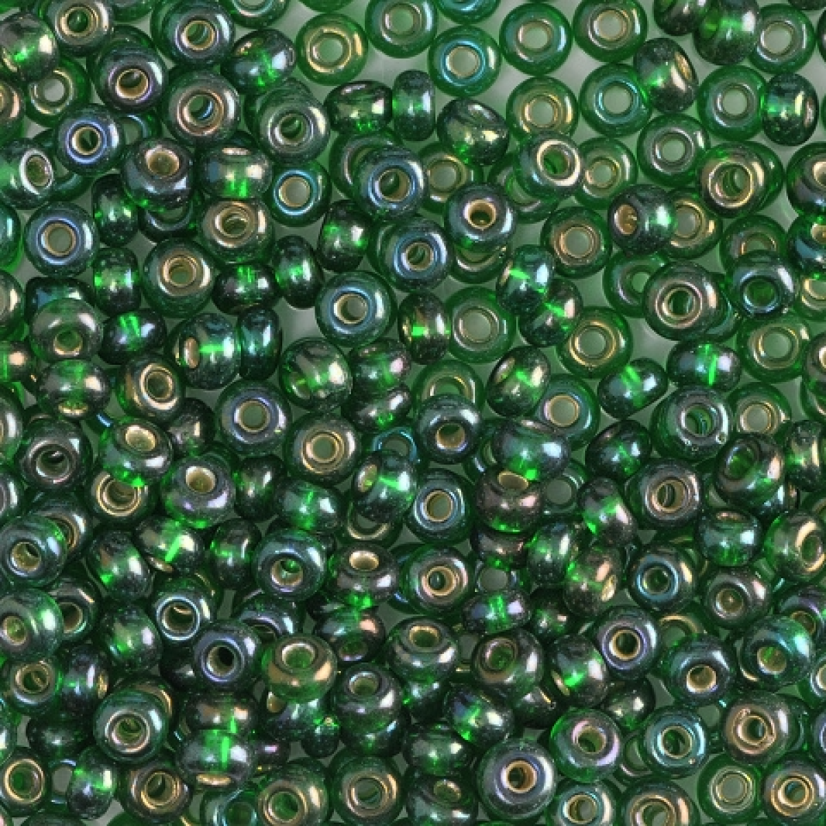 57069 бісер №10 Preciosa (Чехія) 5 грамів. Блискучий райдужний із срібною серединкою
