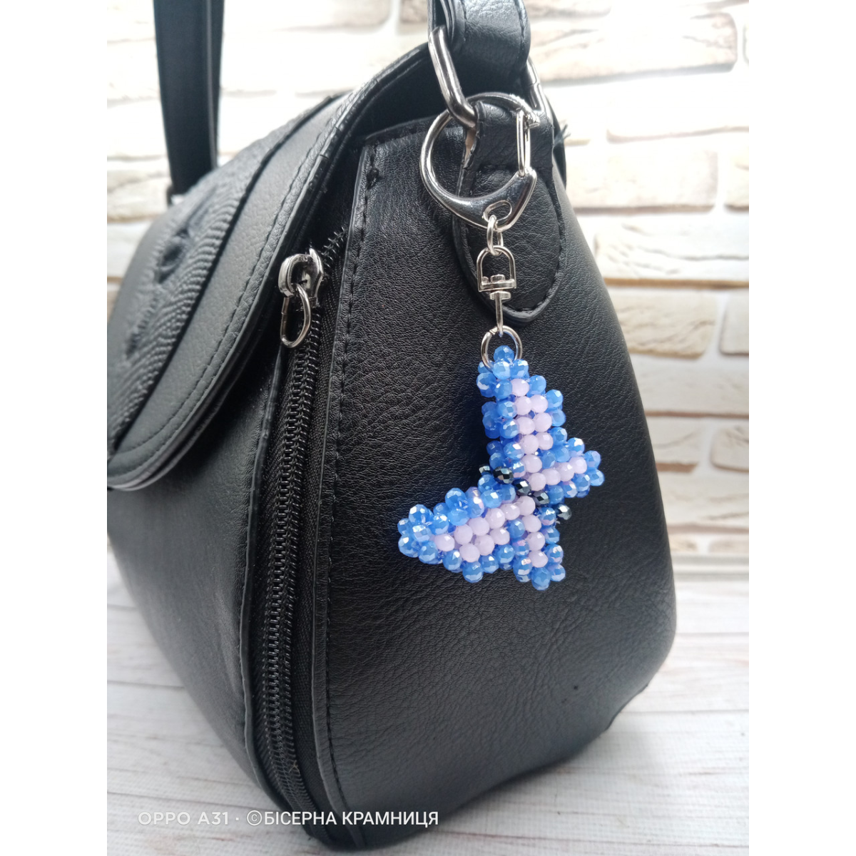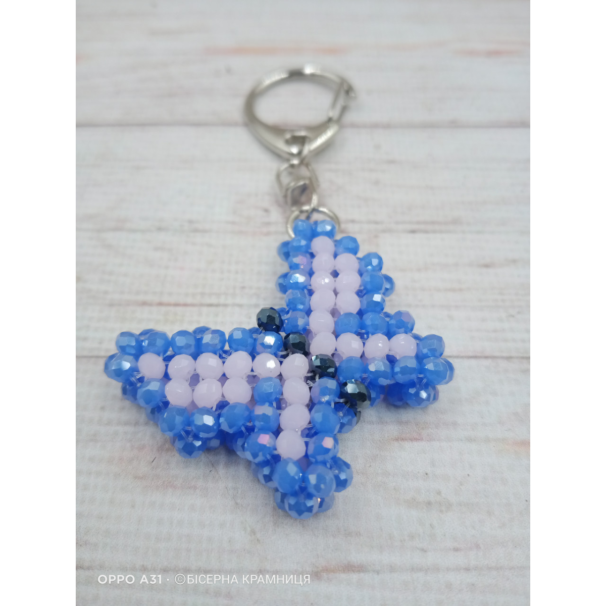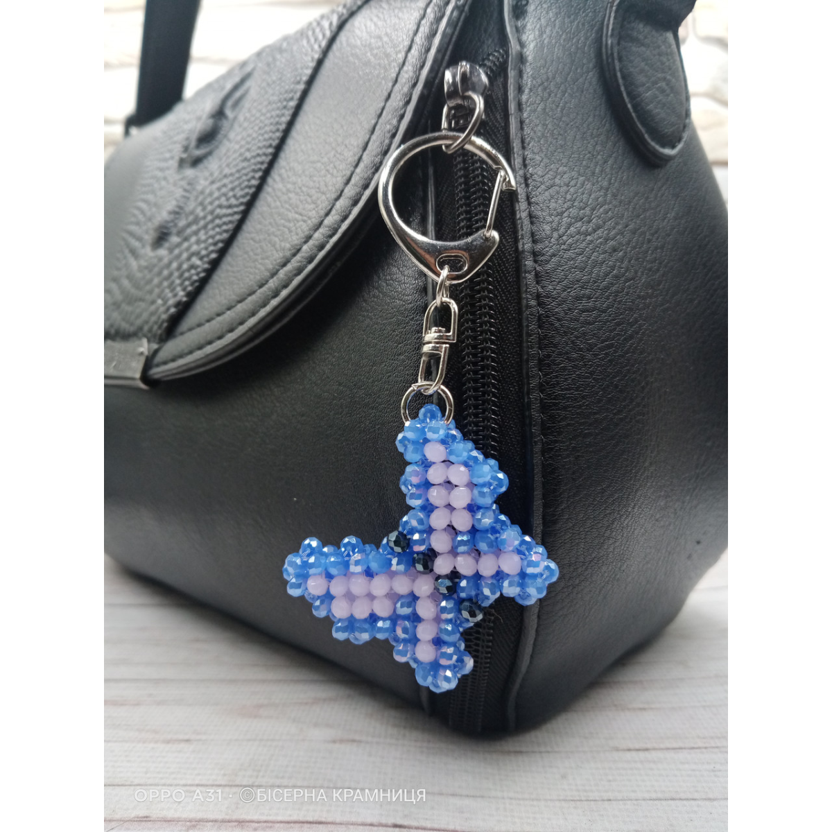 Брелок для ключів, для декору сумки, рюкзака Метелик зі скляних намистин. Ручна робота