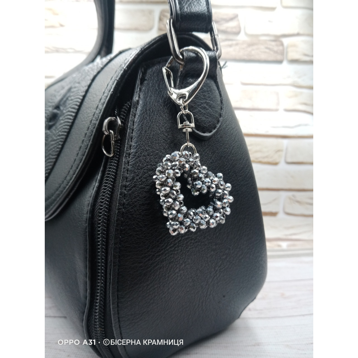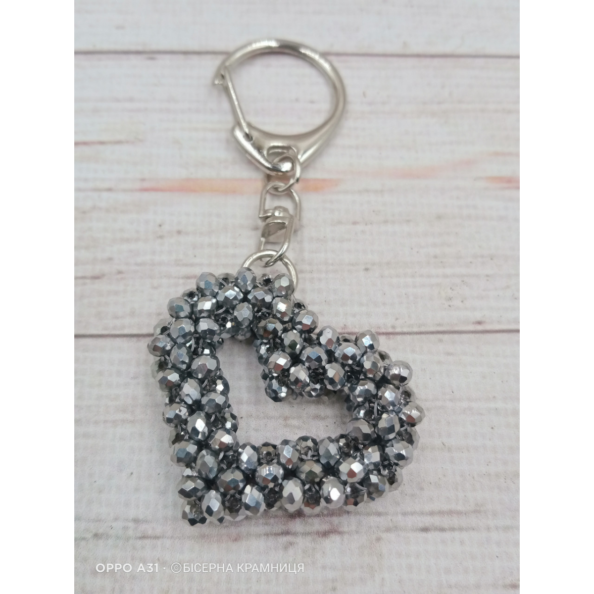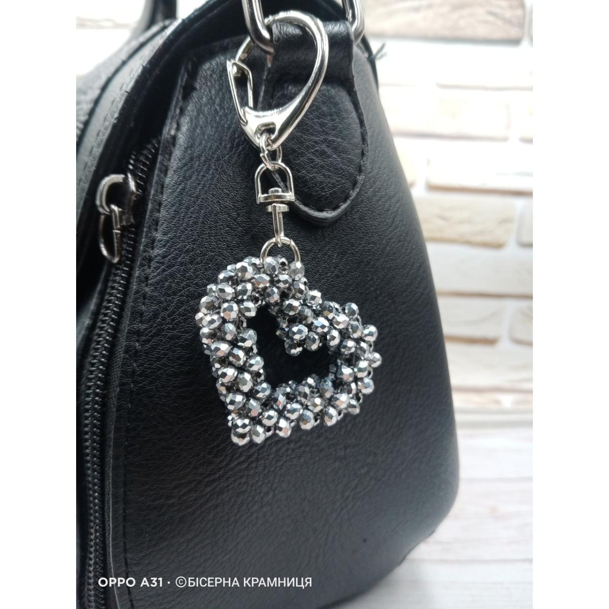 Брелок для ключів, для декору сумки, рюкзака Серденько зі скляних намистин. Ручна робота