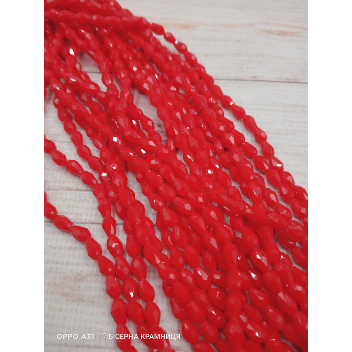 Намистини-краплі, 5*3 мм. Яскраві червоні непрозорі